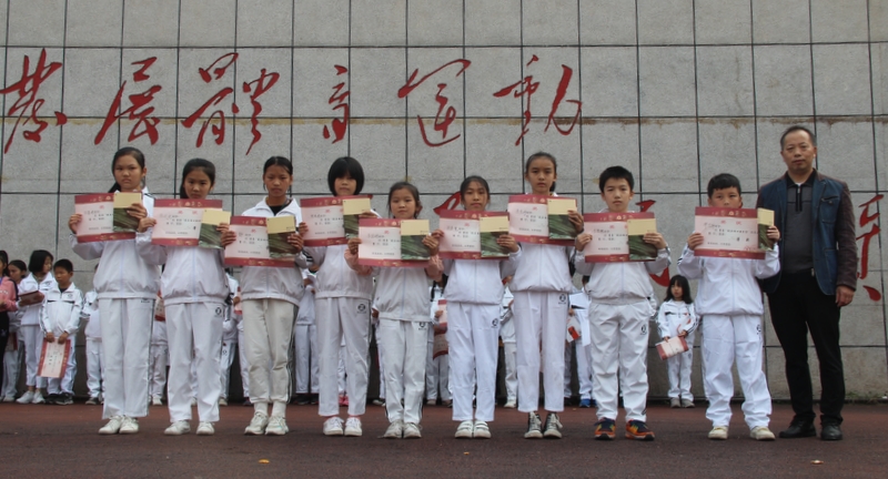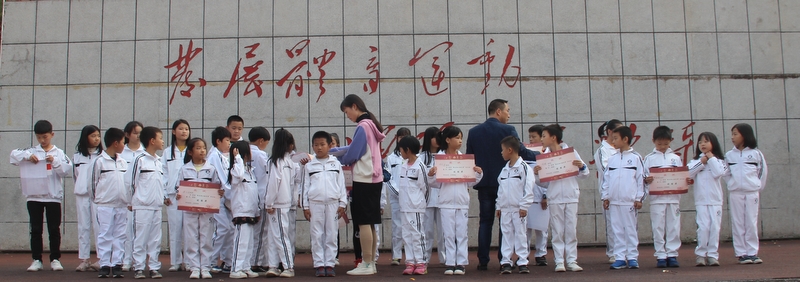 小学部德育主任谢红云、招生主任阳明权为优秀奖获得者颁奖