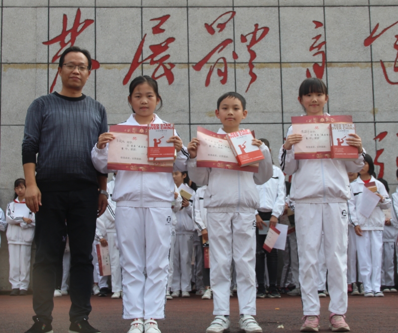 小学部学部主任罗俊豪为一等奖获得者颁奖