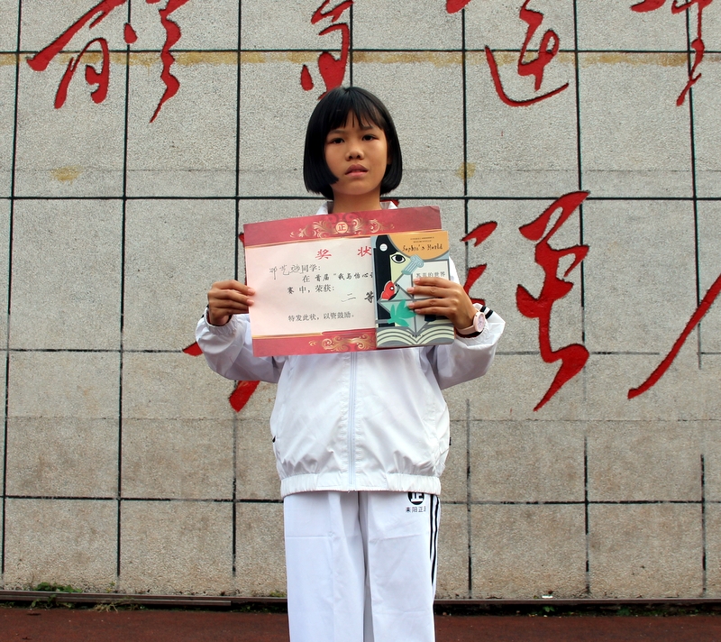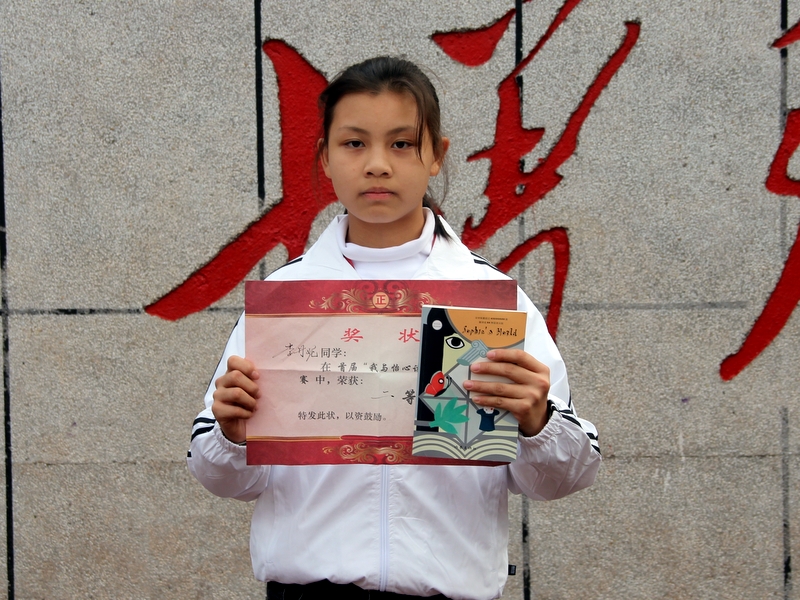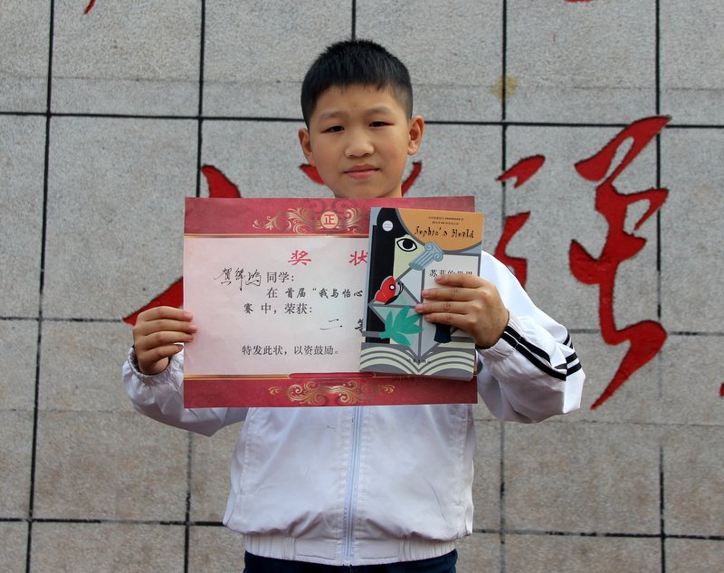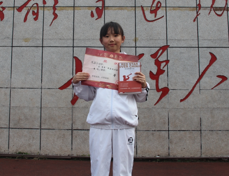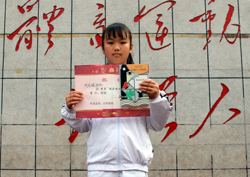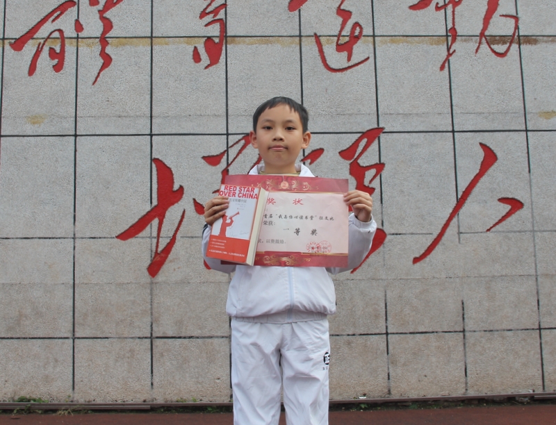 我叫张雅菲,是六年级240班学生。这次作文比赛,我很荣幸地获得一等奖。我这次参赛的作品是《一本书· 一盏灯》,我只是把自己读书的真实感受写出来:好书,就是一盏明灯,它指明了我们前进的方向,引领着我们奋勇前行,我相信这也是同学们的感受吧。这篇文章能获一等奖,这是评委们对我阅读的肯定,所以我倡议,同学们要多阅读,读好书,今后一定要多去怡心读书堂看书学习哦!