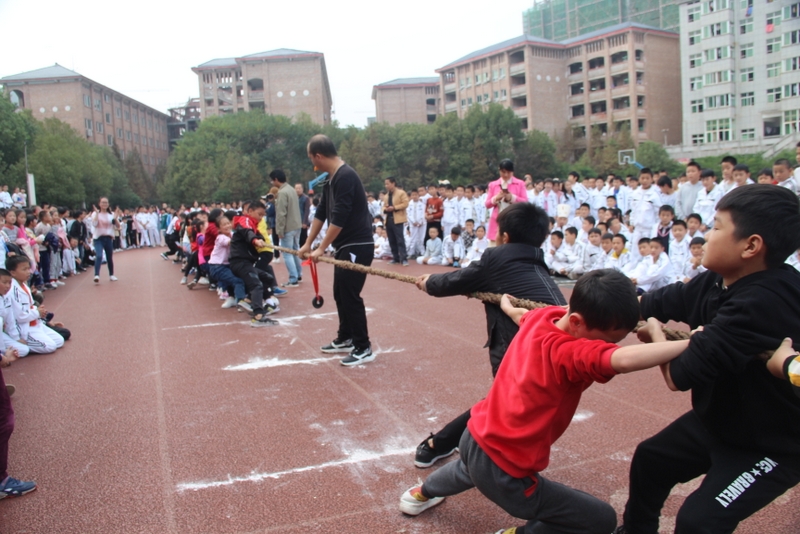 本次拔河比赛由年级主任刘龙军老师主持,在小学部体育组组长于新元老师指挥下,五年级各位老师通力合作,取得了圆满成功。