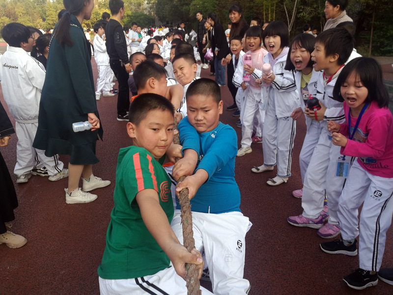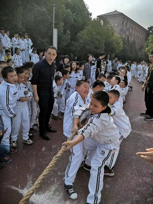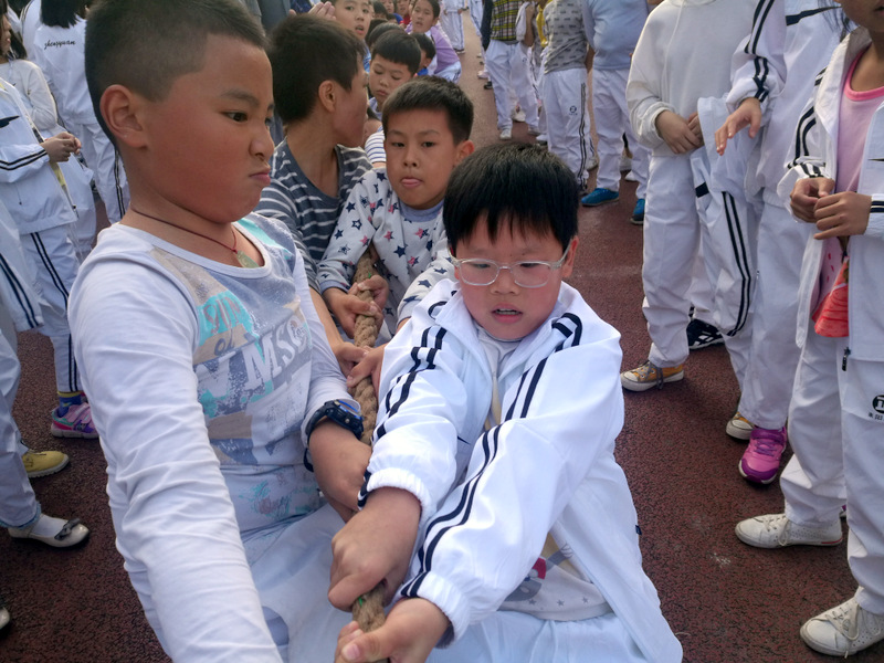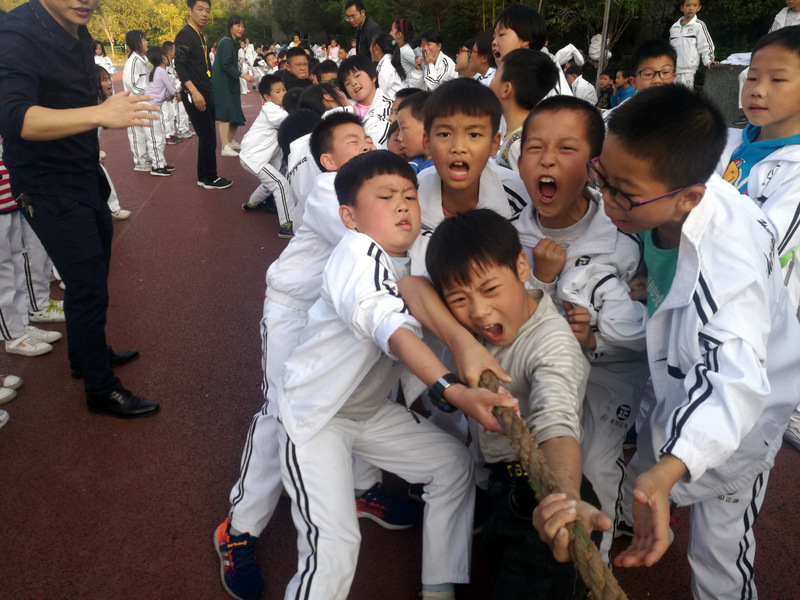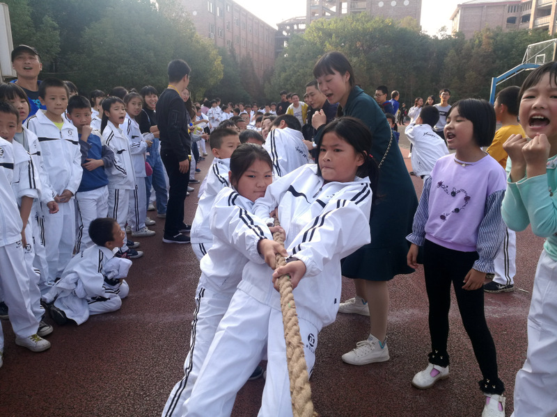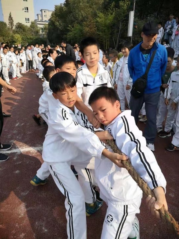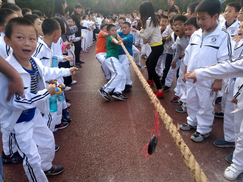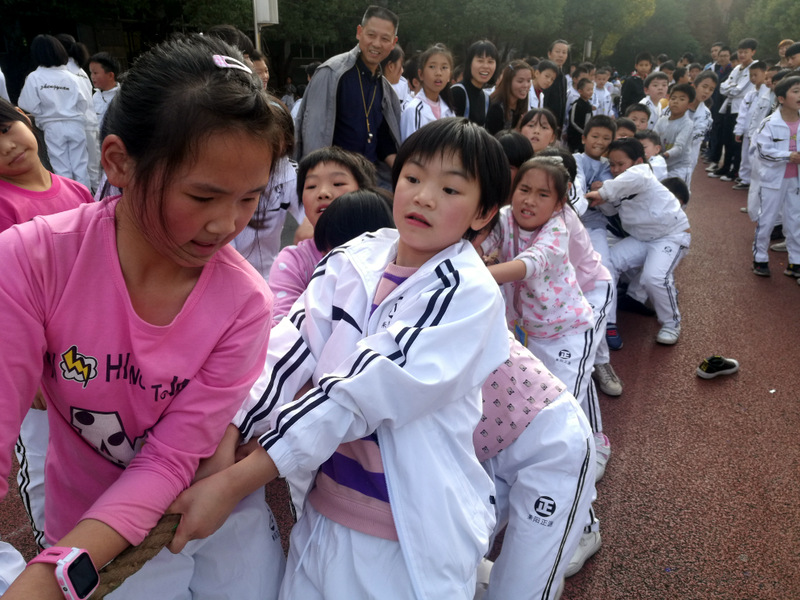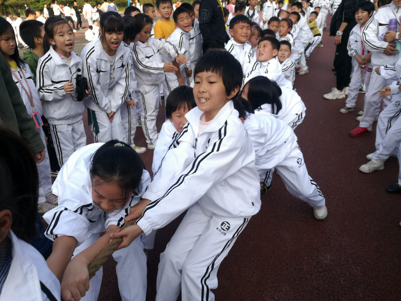 11月8日下午,暖阳高照。四年级全体学生在运动场举行了拔河比赛。