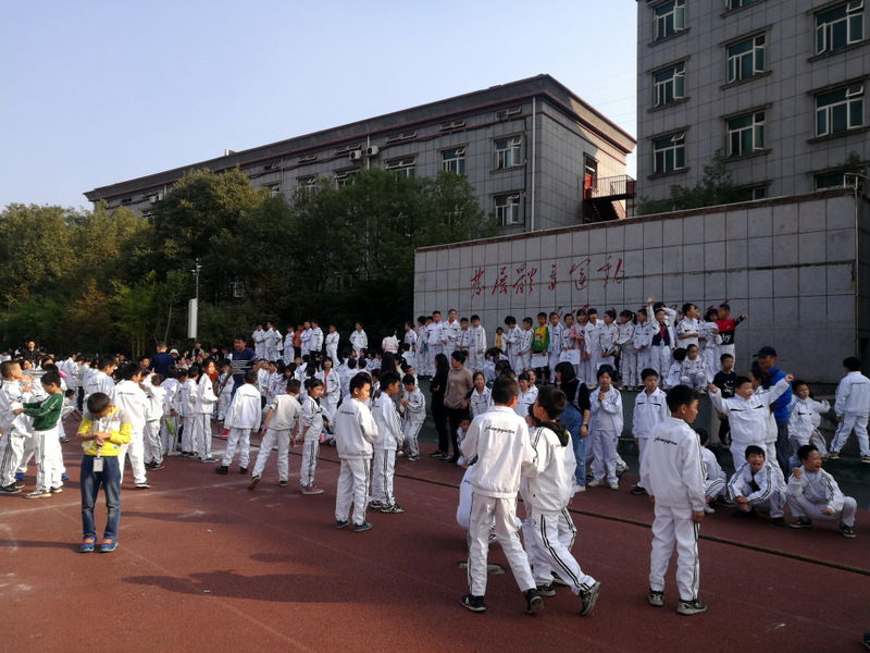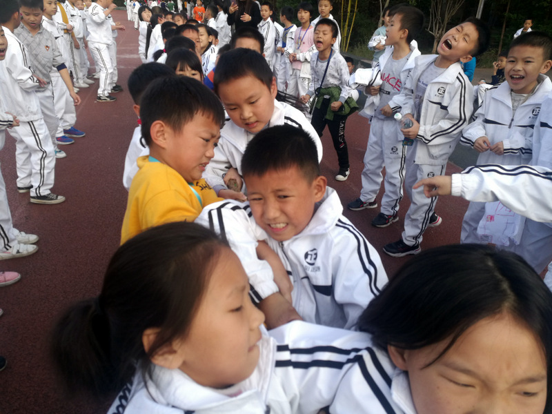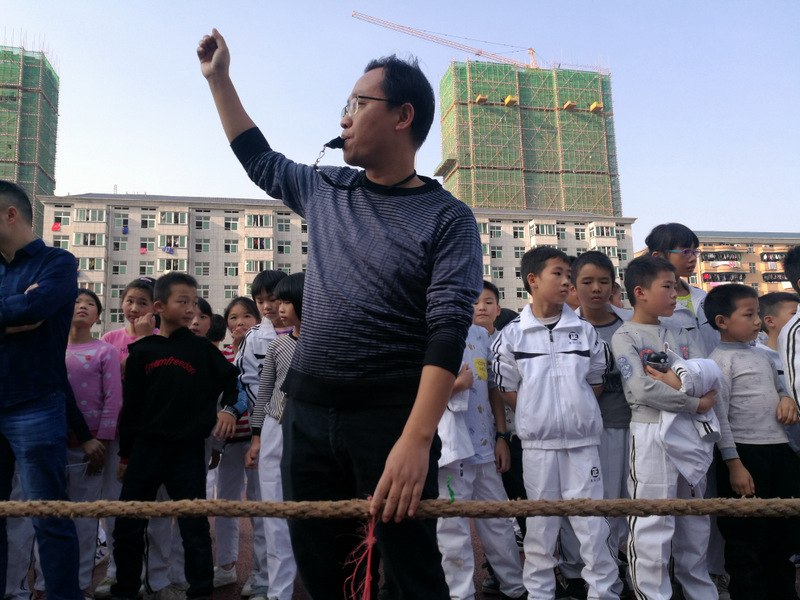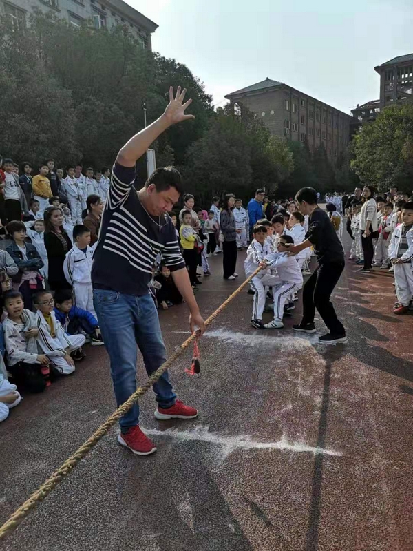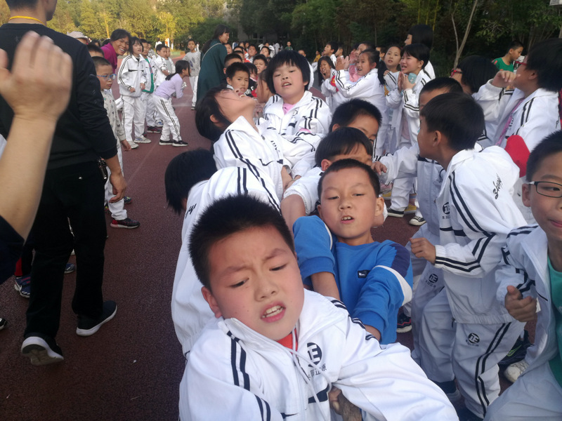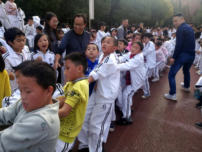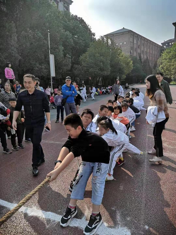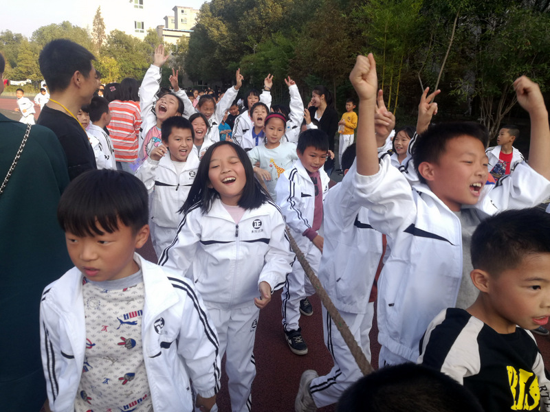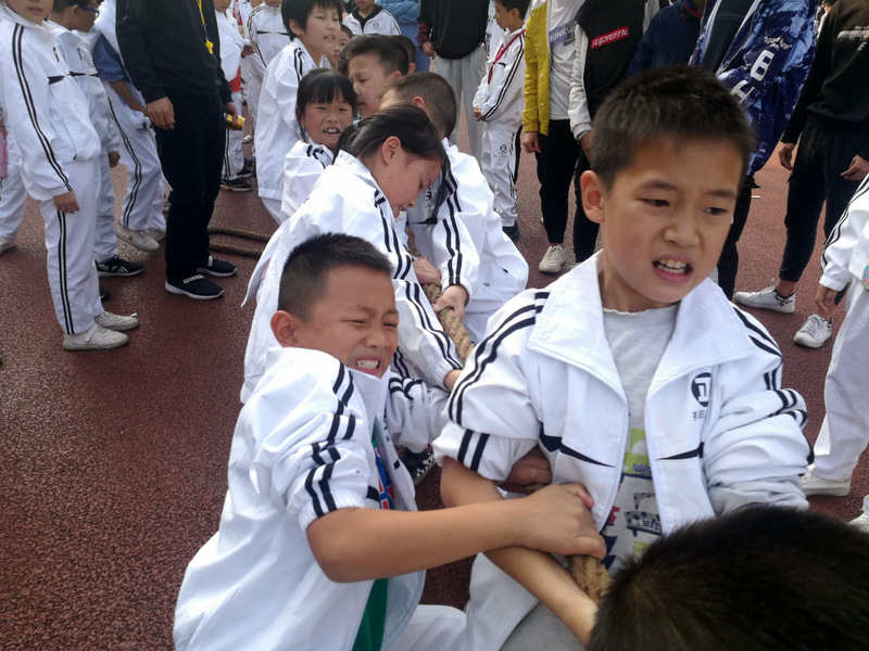 11月8日下午,暖阳高照。四年级全体学生在运动场举行了拔河比赛。
