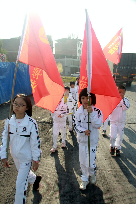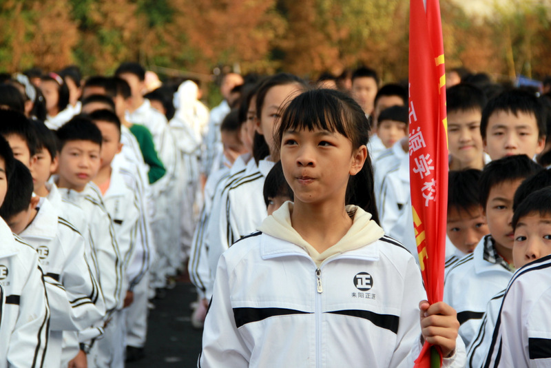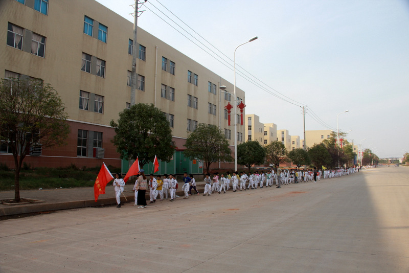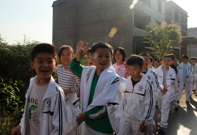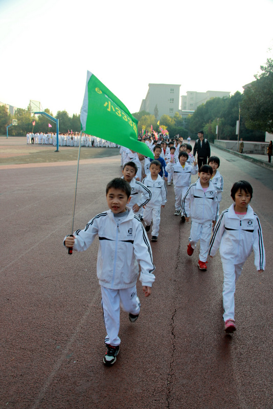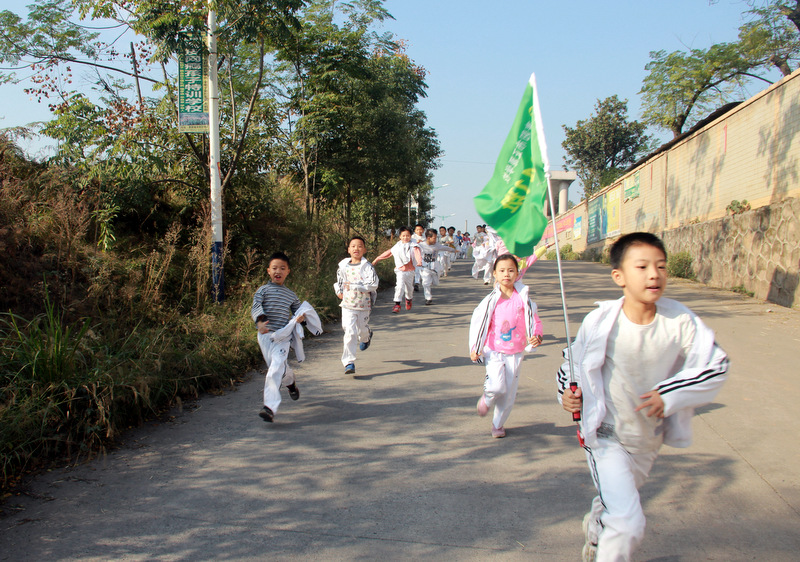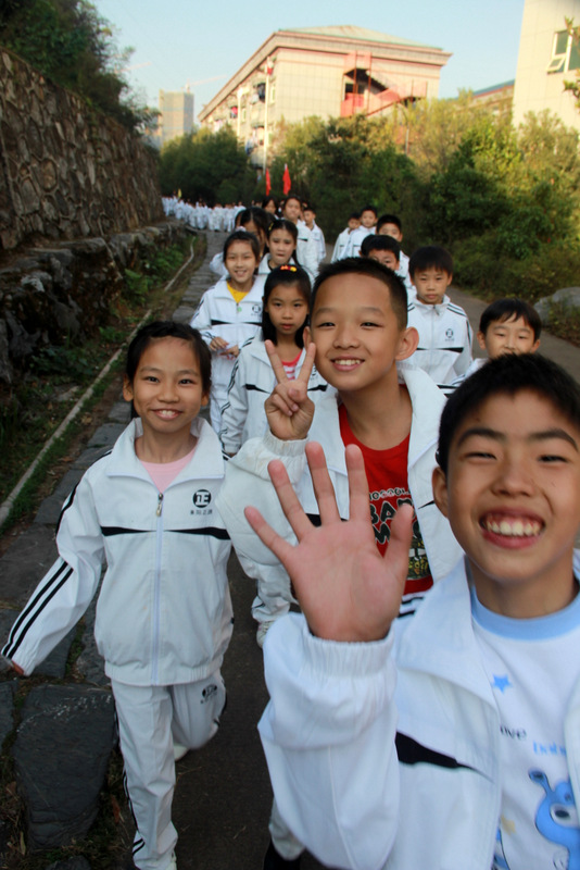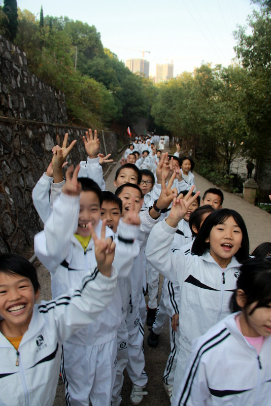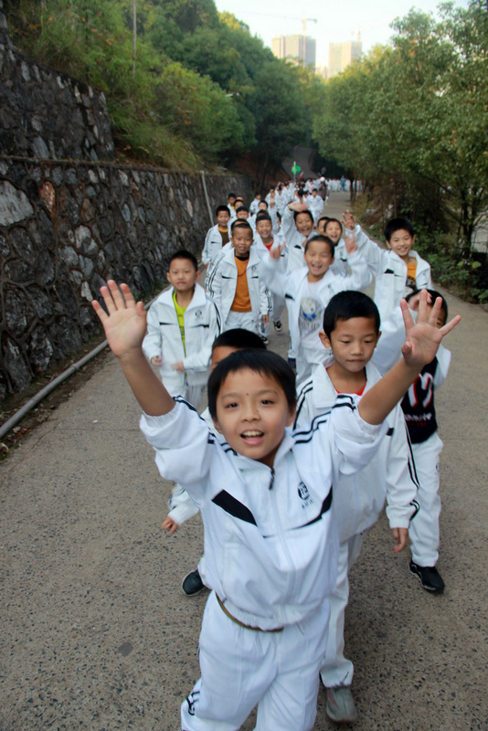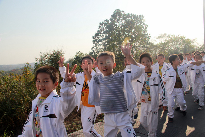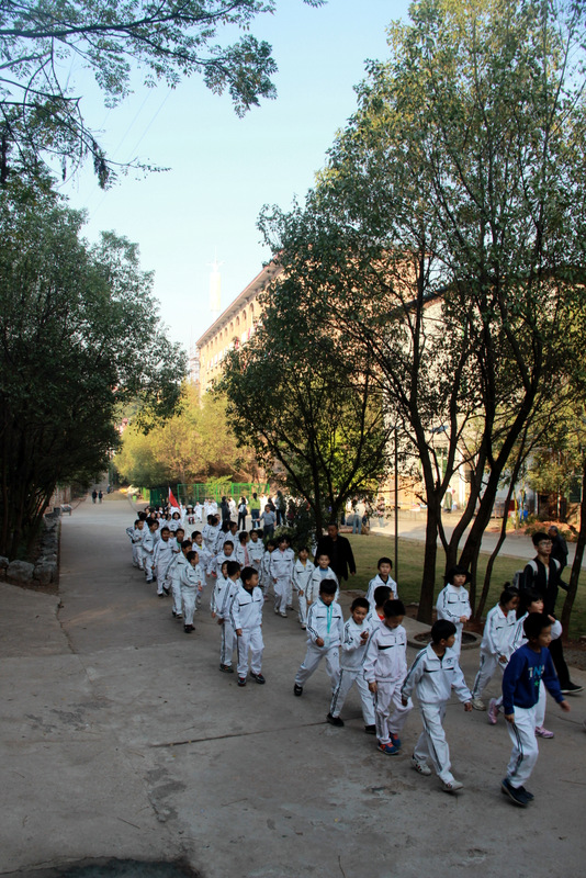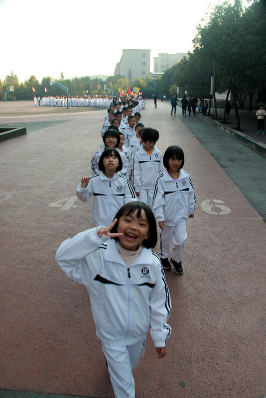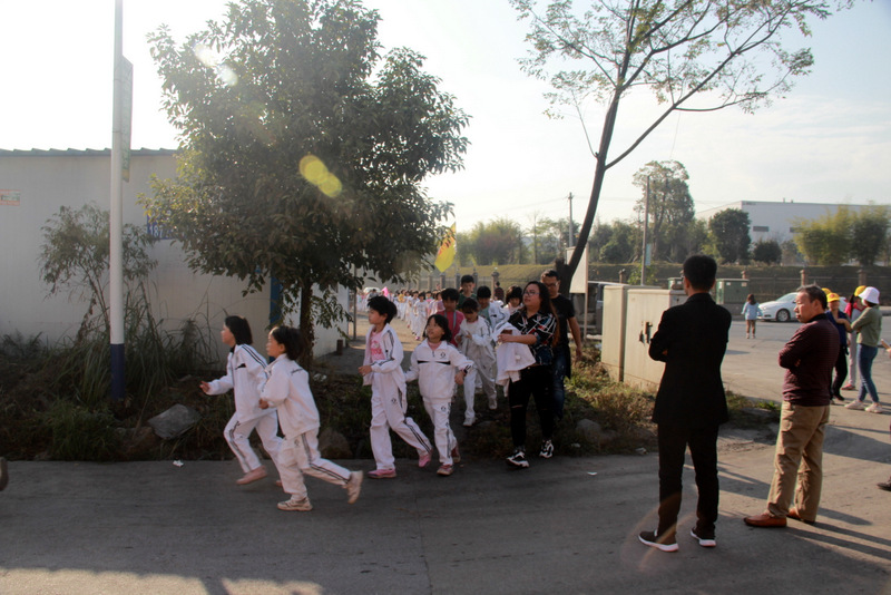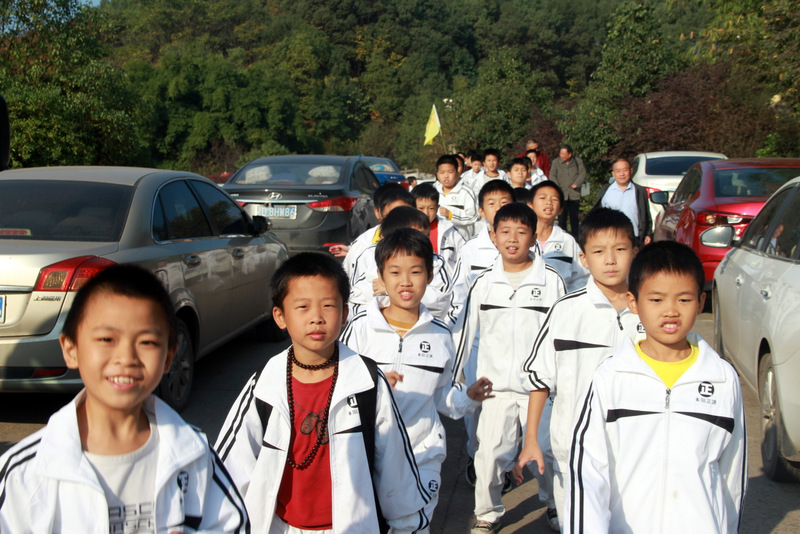 早上8点,小学生运动场上,小学三年级、五年级共29个班1674名学生整装待发,准备直奔蔡伦科技园附近的大金村大金山庄。瞧!那一张张稚气的脸蛋,洋溢着兴奋的笑容;一袭袭洁白的校服,灵动着耀眼的光芒;一面面鲜艳的彩旗,飘扬着绚丽的憧憬。这支庞大的“正源大军”斗志昂扬,豪情万丈,像一条巨龙行进在马路上,真可谓:晴空一军排龙上, 便引豪情到碧霄!