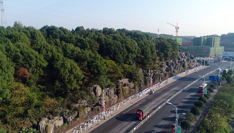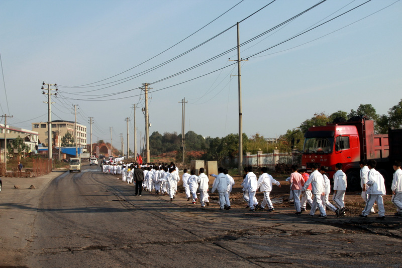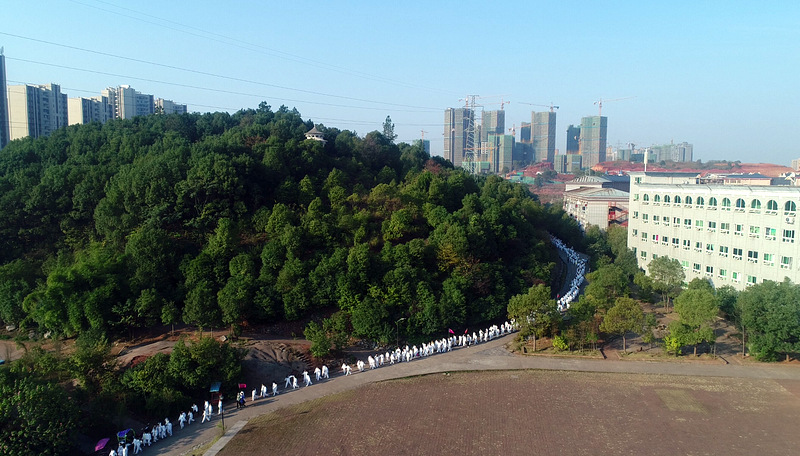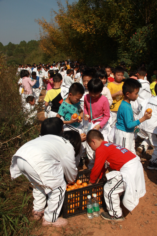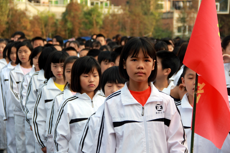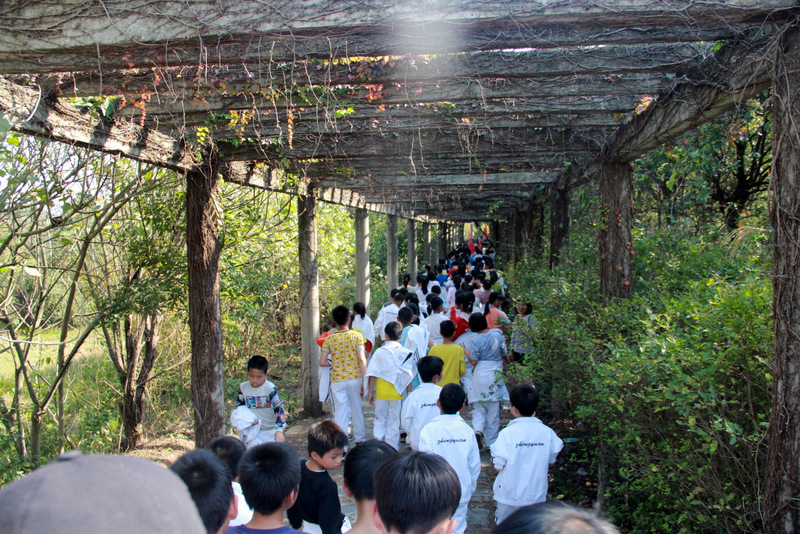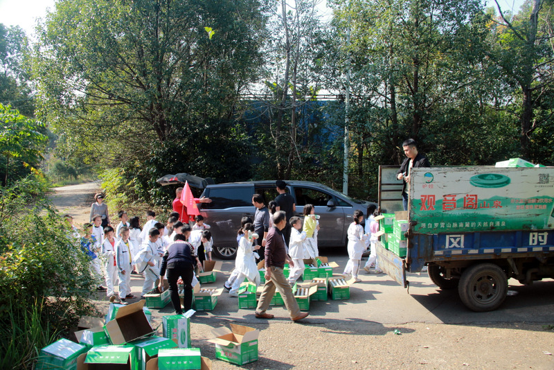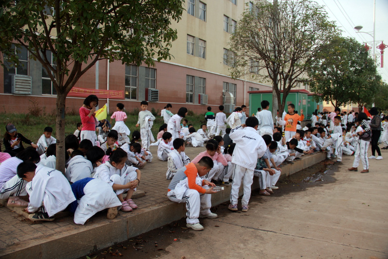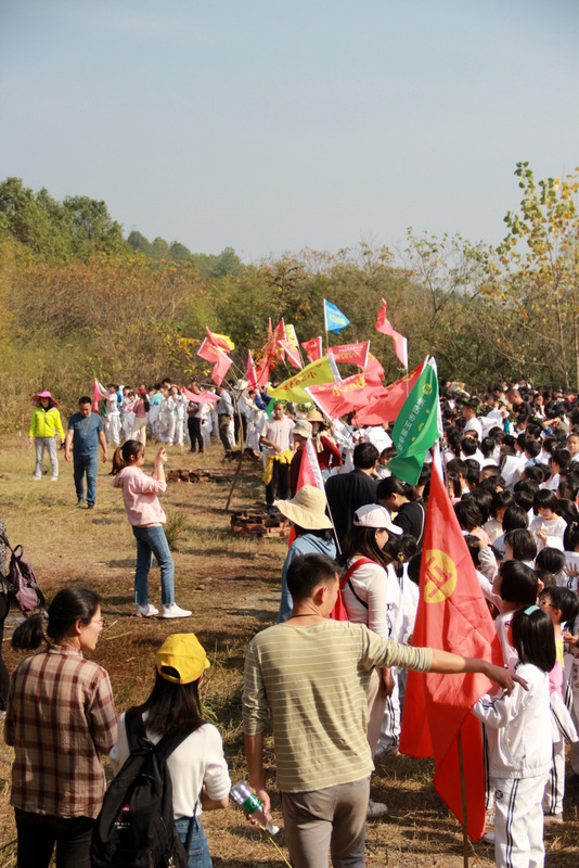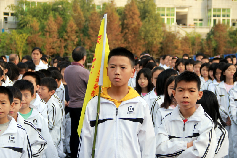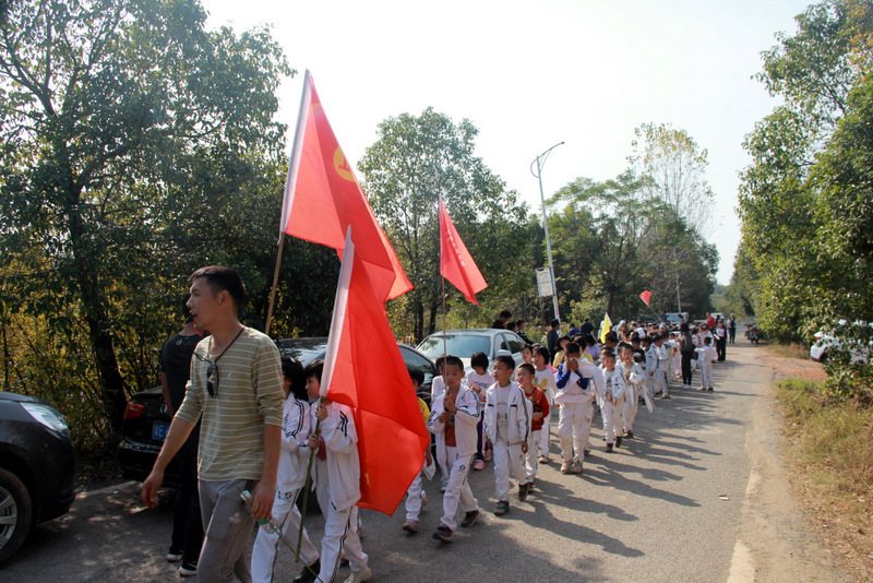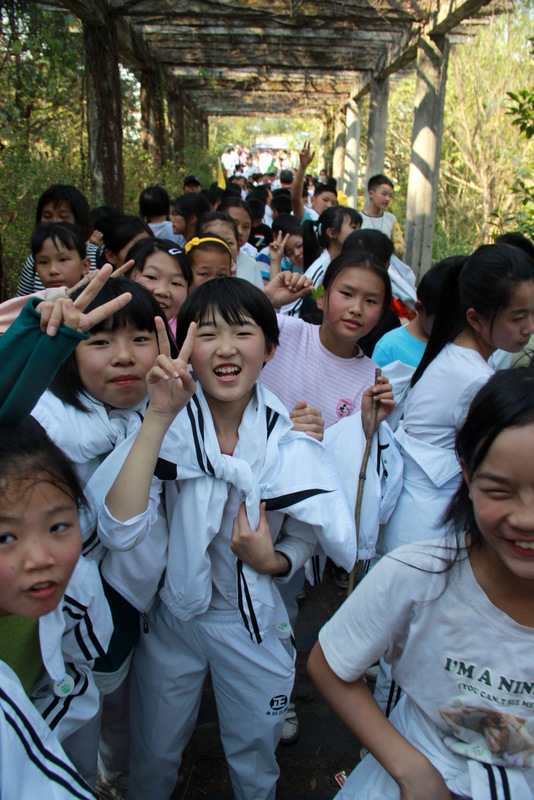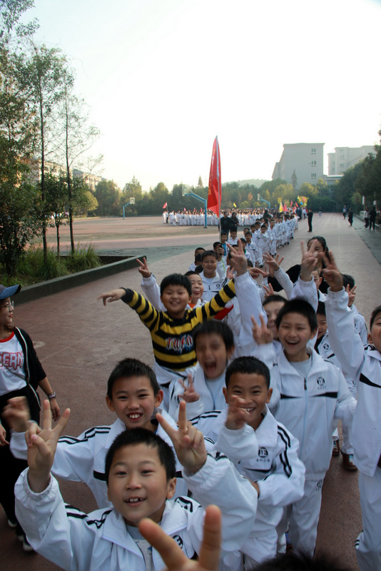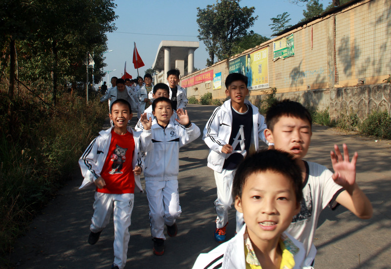 早上8点,小学生运动场上,小学三年级、五年级共29个班1674名学生整装待发,准备直奔蔡伦科技园附近的大金村大金山庄。瞧!那一张张稚气的脸蛋,洋溢着兴奋的笑容;一袭袭洁白的校服,灵动着耀眼的光芒;一面面鲜艳的彩旗,飘扬着绚丽的憧憬。这支庞大的“正源大军”斗志昂扬,豪情万丈,像一条巨龙行进在马路上,真可谓:晴空一军排龙上, 便引豪情到碧霄!