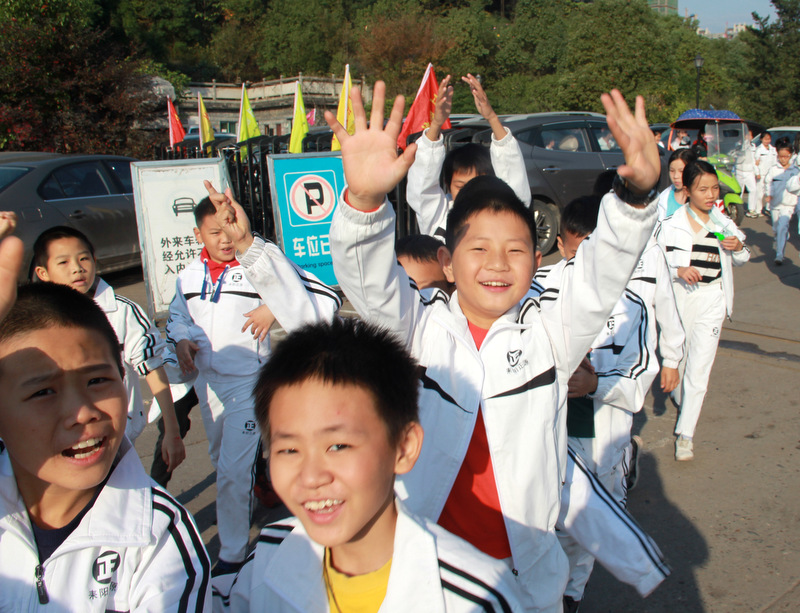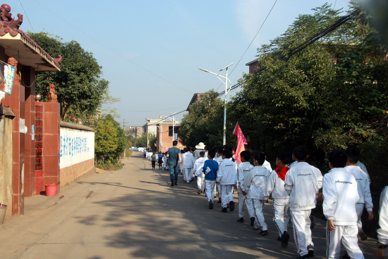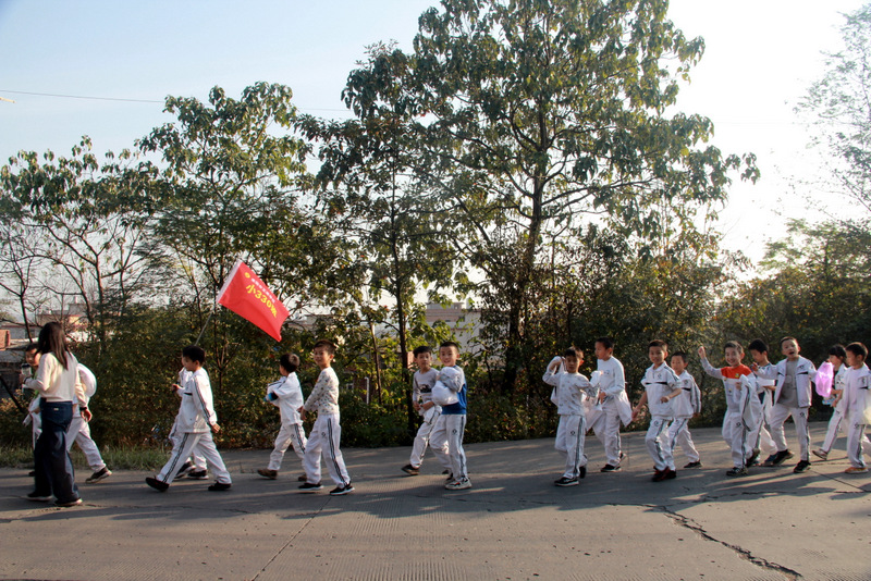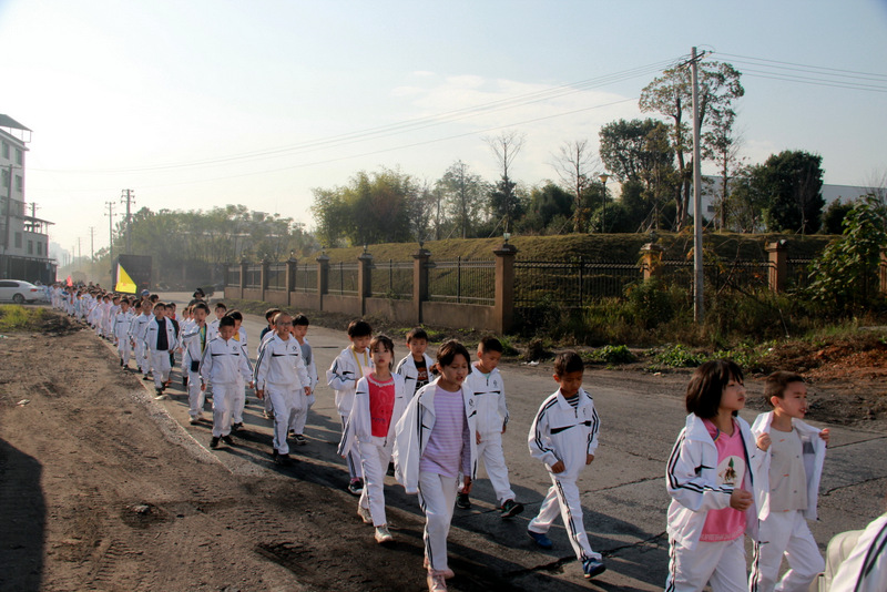 学部罗俊豪主任和五年级刘龙军主任,再三强调了沿途的安全及野炊的注意事项。随着罗主任的一声令下,三年级年级主任刘海英及德育主任姜波带领先头部队浩浩荡荡地从小学部往学校南大门出发。只见一条长龙沐浴着朝阳,一路欢喜,一路歌,仿佛被沿途迷人的田园风光陶醉了,连农舍老乡们都连连点赞呢!