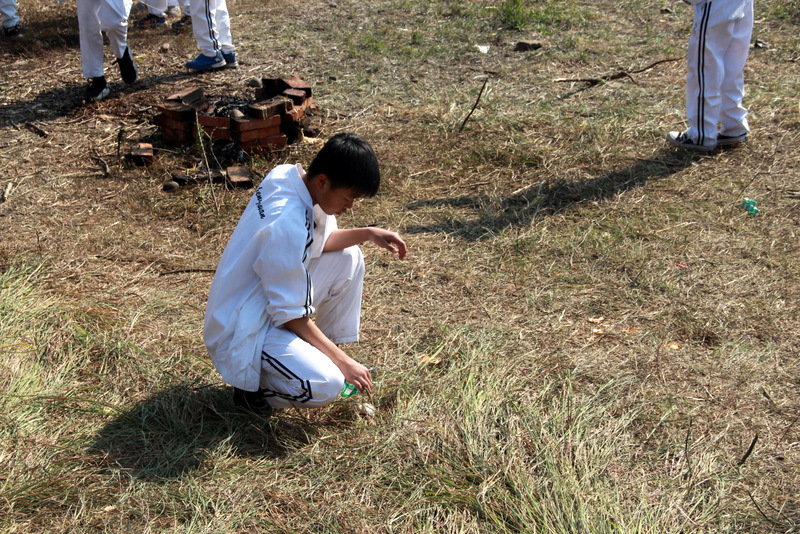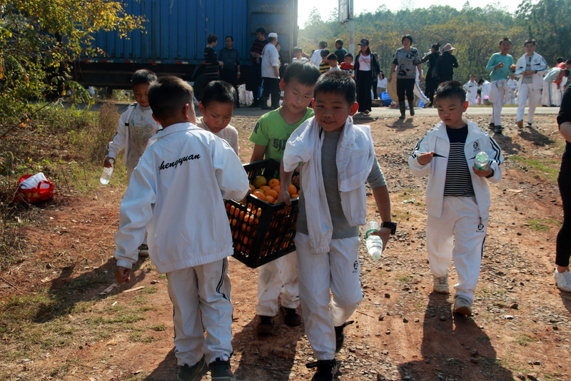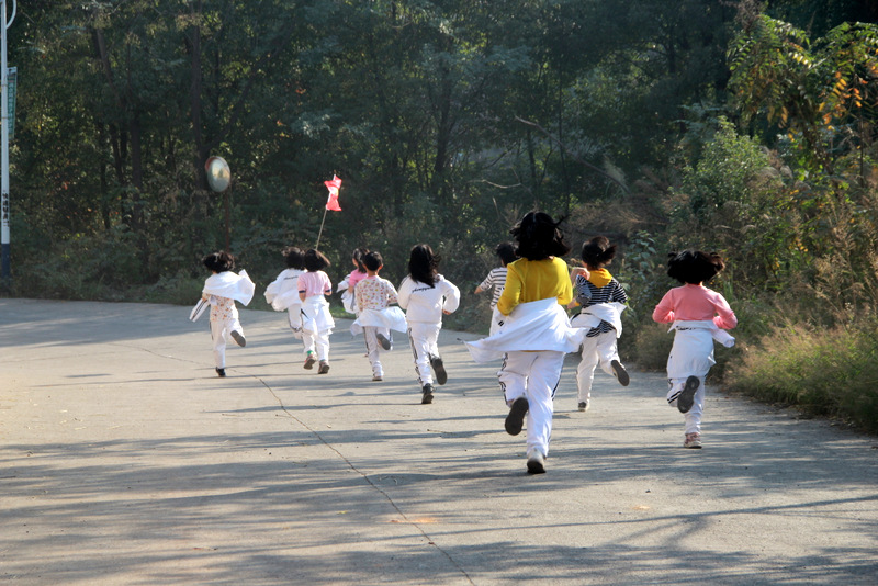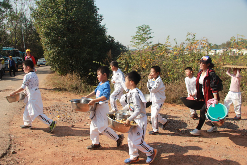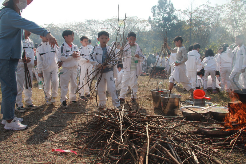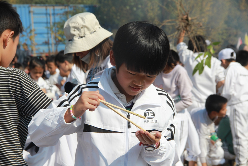 12点30左右,各班浇灭炉火,清洗好大锅,清理完垃圾,就近自由娱乐:有些班级排着整齐的队伍集体畅游“生态长廊”;有些班级则集体化身为“脱兔”、“灵猴”在附近的树林里蹦着、跳着,时不时扬起金黄的落叶,大喊:“下雨啰!下雨啰!”各班班主任“咔嚓咔嚓”地按着手机相机,定格了快乐!定格了天真……那爽朗的欢笑声、自由的嬉闹声交织一片,恰似一首悠扬的童年赞歌!
