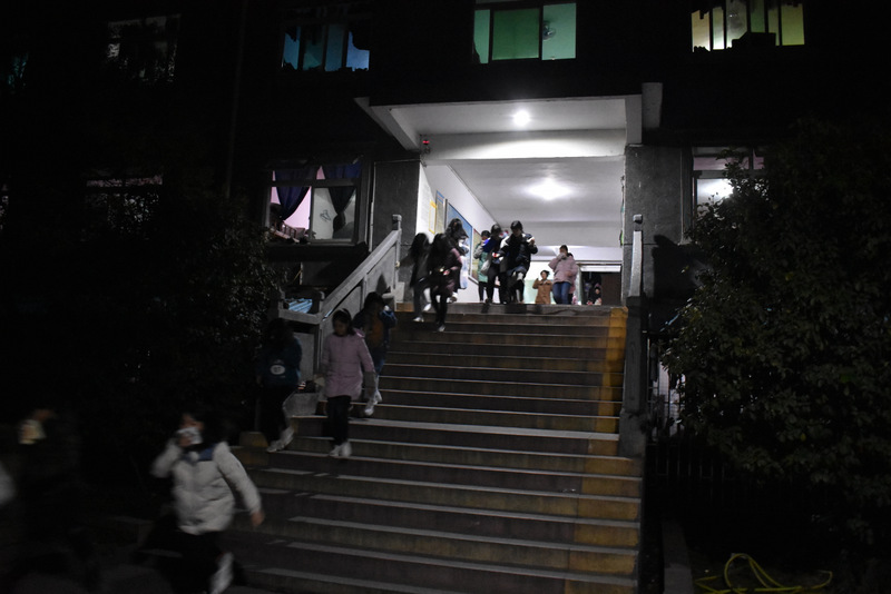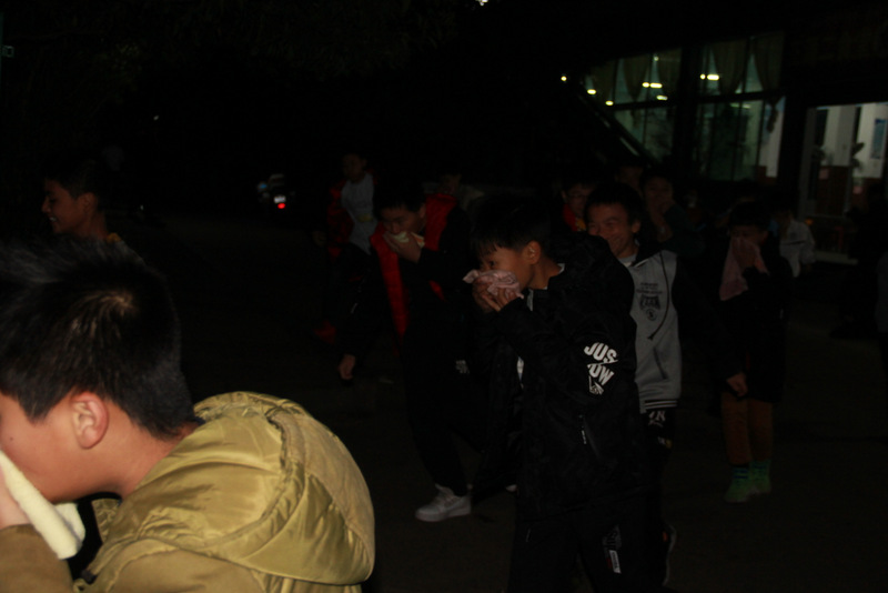 六号楼住着准初一男生622人,初一男生1123人,初三男生260人,共计2005人。第一轮演练于6:20拉响警报,最快的58秒到达安全地带小学生运动场,最后一个学生离开宿舍楼时花了6分58秒。整个过程既紧张又平稳。第二轮在各寝室停电的情况下进行,耗时5分06秒。初中部学部主任曾良古作了小结:第二次较第一次,学生态度更认真,动作更熟练,班与班之间的队伍衔接更紧密,配合更协调,奔跑更迅速。活动圆满结束,达到预期效果。