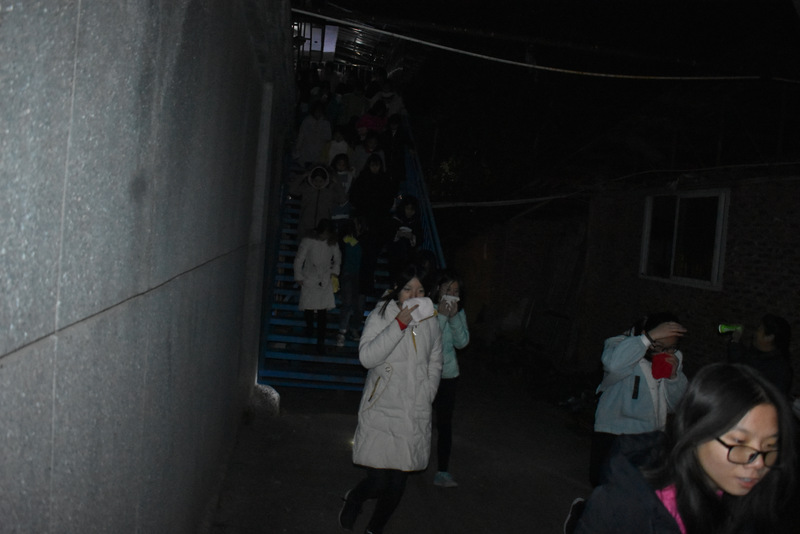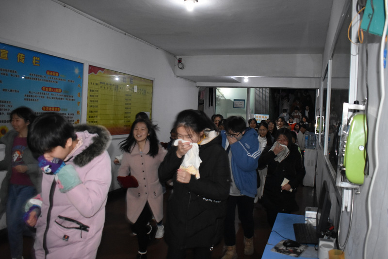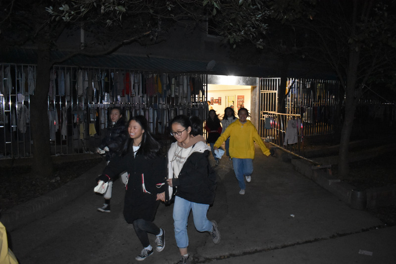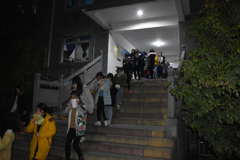12号楼住着高中部全部女生2170人,艺术部女生208人,初二初三部分女生145人,共计2523人。第一次有个别寝室学生列队后再跑出,没有抢抓时间,整个演练耗时近8分钟。第二轮在寝室关灯情况下进行,经过第一次结束点评后,同学们更重视,更熟练,紧张有序,耗时6分35秒,达到预期目标,整个活动圆满结束。
