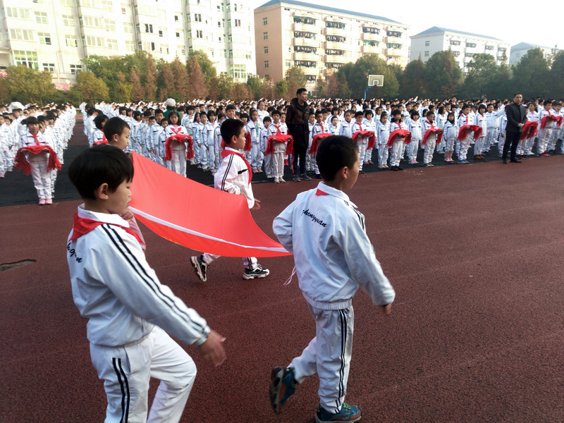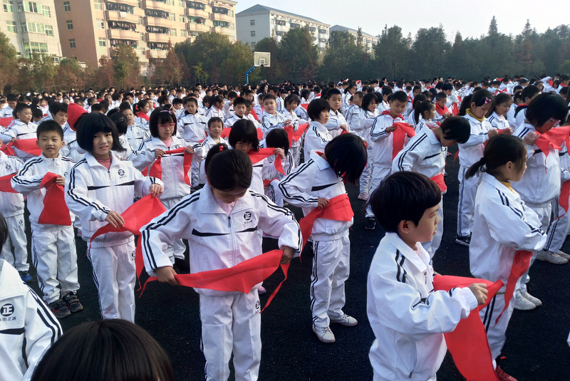 12月2日早上,正源学校小学生运动场喜气洋洋,本学期少先队入队仪式即将在这里举行。