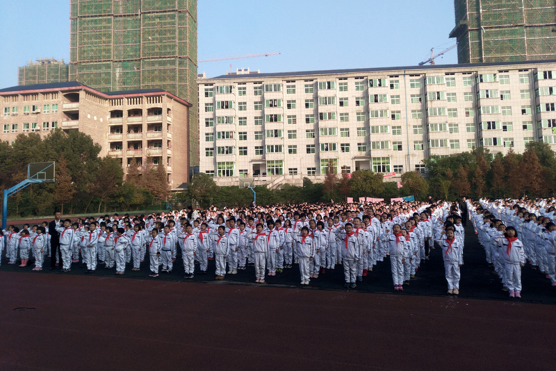 8点整,在充满朝气和活力的《中国少年先锋队队歌》的广播歌声中,少先队员们排着整齐的队伍,踏着坚定的步伐,有序进场。