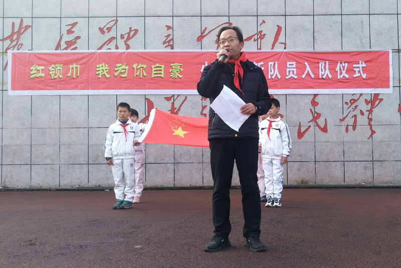 少先队辅导员陈登盛老师带领全体队员宣誓