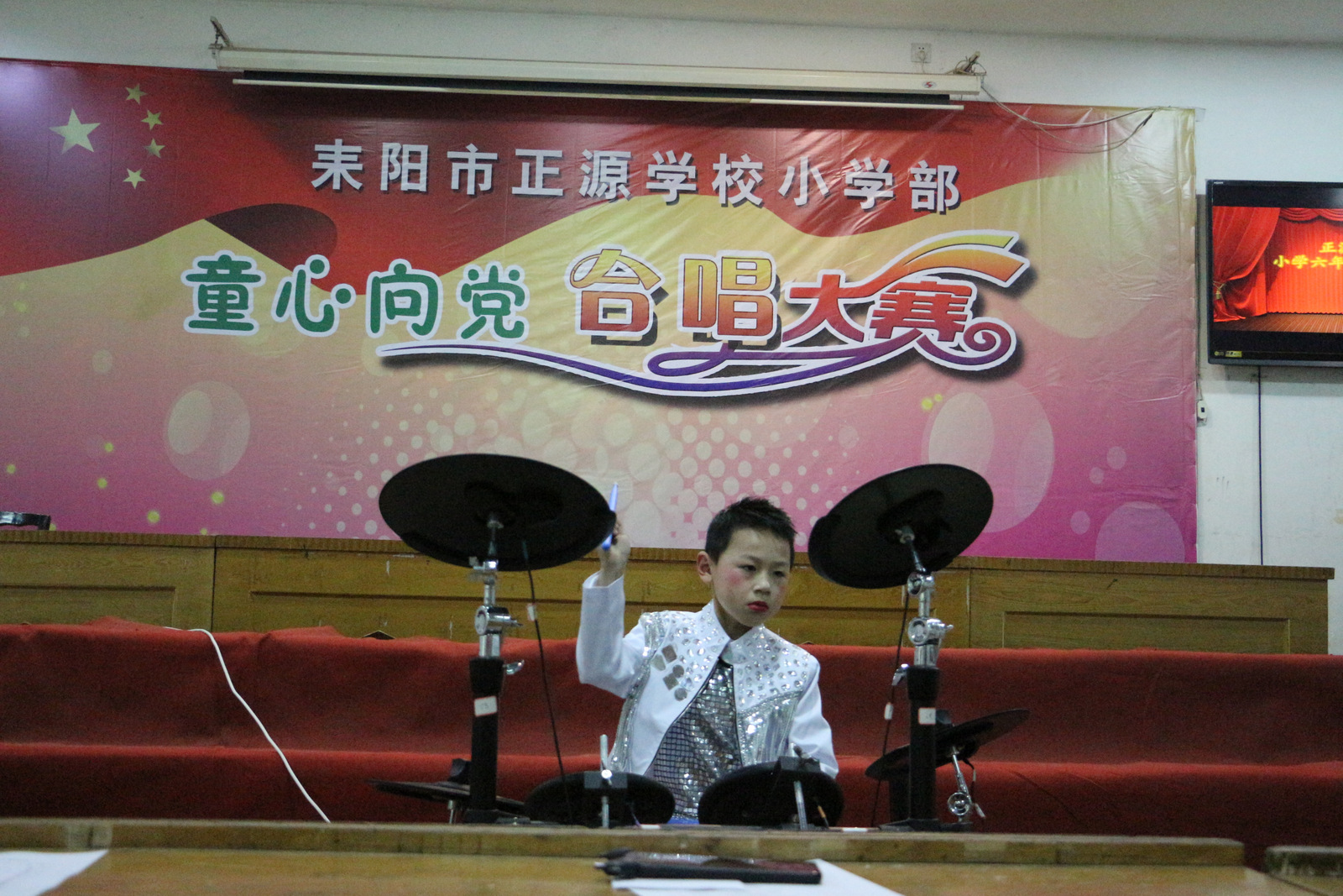 三年级的蒋俊杰同学表演架子鼓《沙漠骆驼》。随着节奏的响起,下边的观众也跟着唱起来:“什么鬼魅传说,什么魑魅魍魉妖魔,只有那鹭鹰在幽幽的高歌……”架子鼓的表演使活动提前进入高潮,现场欢呼一片。