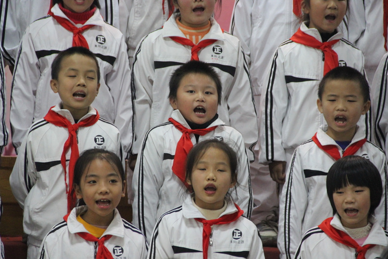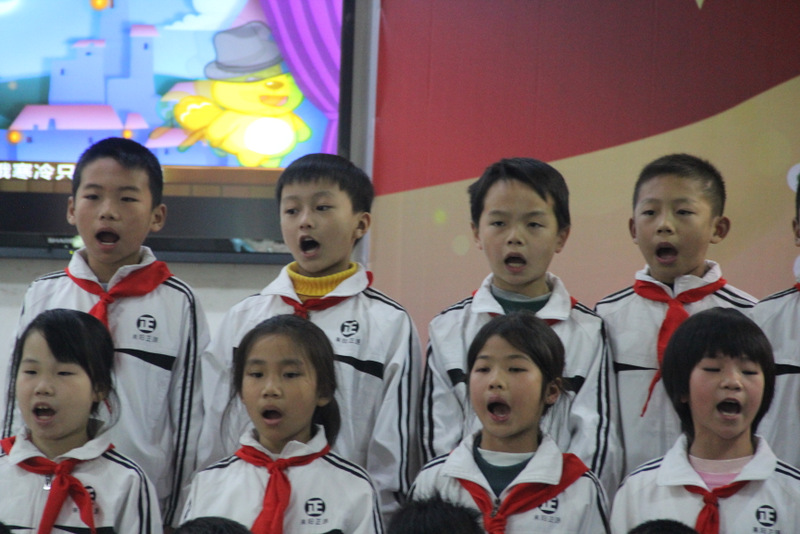 下午2时许,338班一群朝气蓬勃的“红领巾”登上舞台,一首《红领巾飘起来》拉开了本次比赛的帷幕。参赛队员们服装整齐,精神饱满。各参赛队,纪律严明,进、出场井然有序,台风良好,演唱节奏鲜明,声情并茂,动作整齐到位。