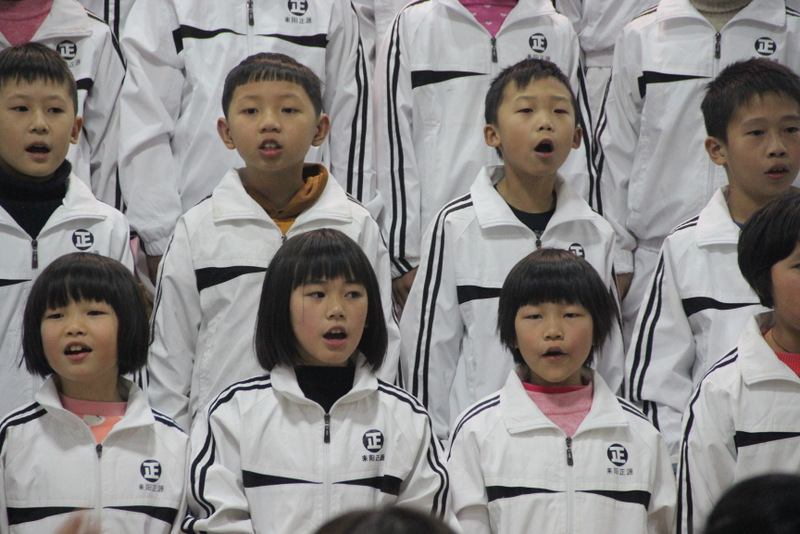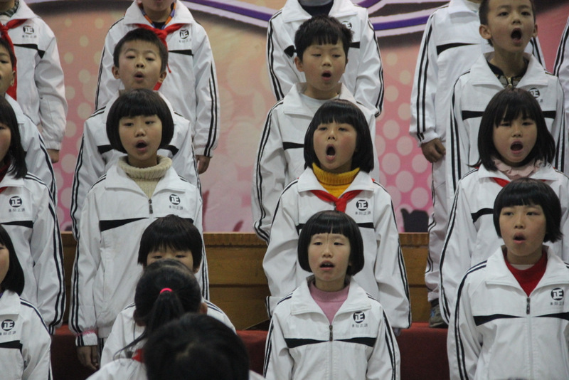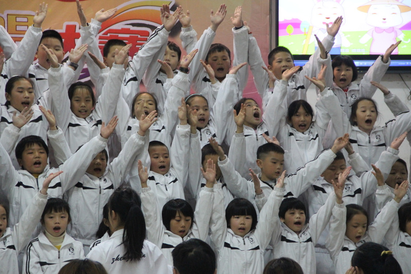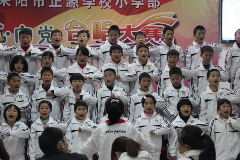 最后,326班的《娃哈哈》、327班的《南泥湾》又将观众的激情再次点燃,他们为祖国的秀美山川而歌唱,为自己是祖国的花朵而自豪,他们每个人脸上都笑开颜,把此次合唱比赛推向了高潮。