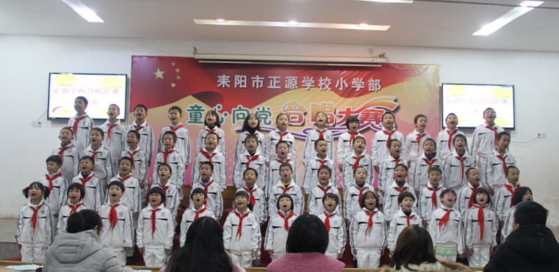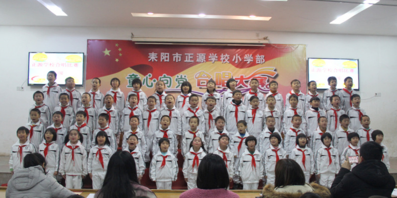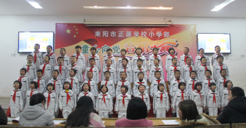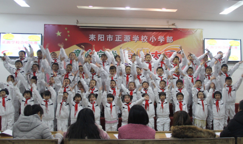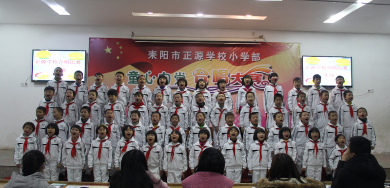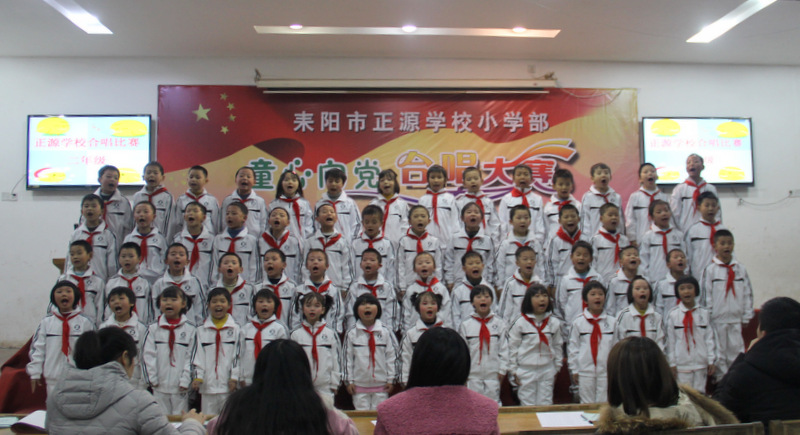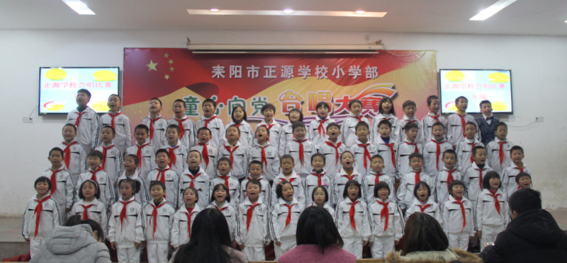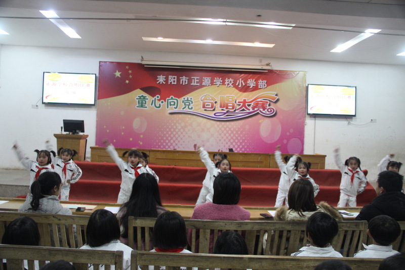 本次比赛以班级为单位,共有八个班450多人参加,每班唱两首歌曲,必唱曲目为《小红帽》,选唱曲目由音乐老师周子娟用心挑选那些耳熟能详又催人奋进的爱国歌曲。为了使比赛完美呈现,音乐老师把每个班的参赛曲目都悉心教授了许多遍,每个班的歌曲都精心编排了动作,并且不厌其烦地教学生表演;各班的班主任也多次组织班上学生用心练习。在比赛中各班服装整齐,意气风发,进退场秩序井然,表演时声音洪亮、感情丰富,展现了我们正源学子朝气蓬勃、昂扬向上的精神风貌,践行了校长“艺术属于每个孩子”的教育理念,也给观众们呈上了一顿丰盛的艺术大餐。