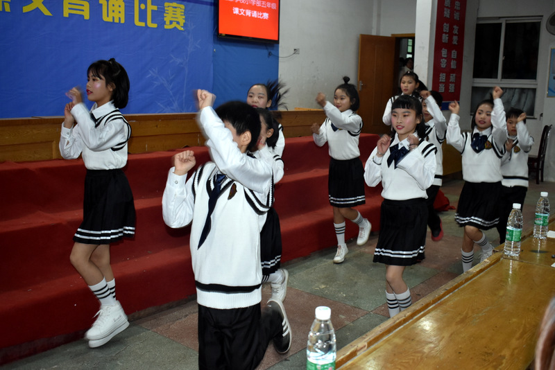 五年级共18个班参加了此次比赛,分别背诵了《古人谈读书》《中国少年说》《鸟的天堂》《落花生》《搭石》《圆明园的毁灭》《珍珠鸟》《白鹭》《四季之美》九篇古今中外的经典名篇。