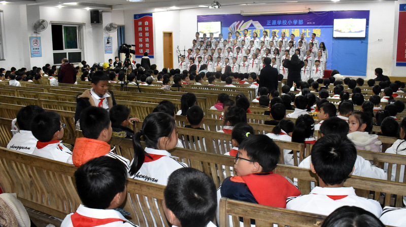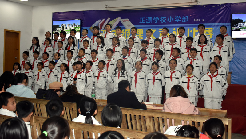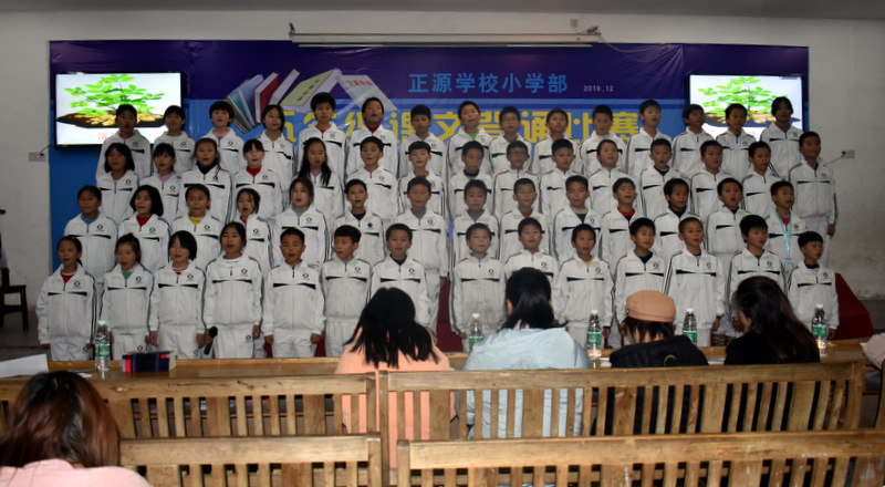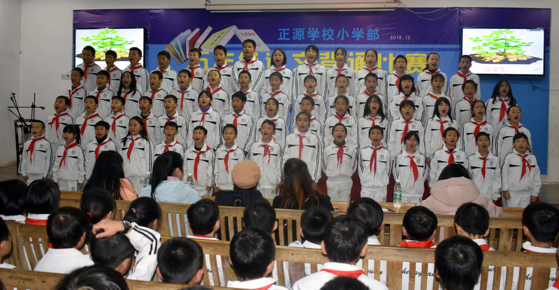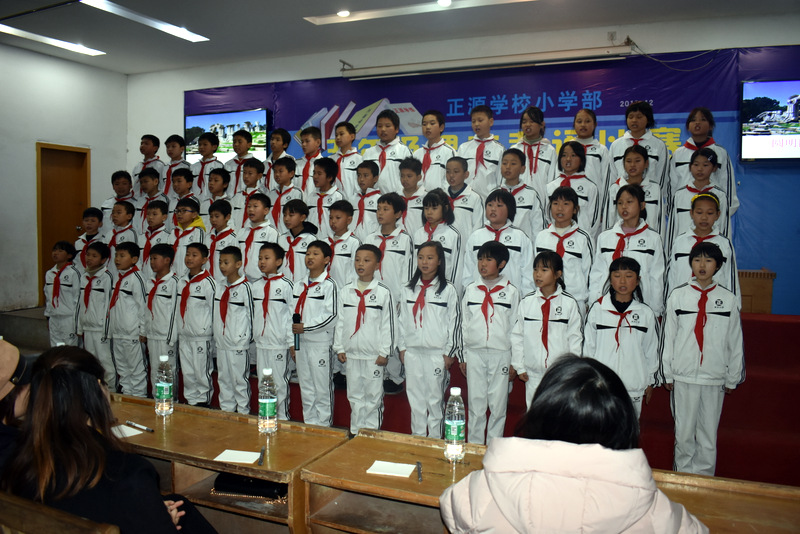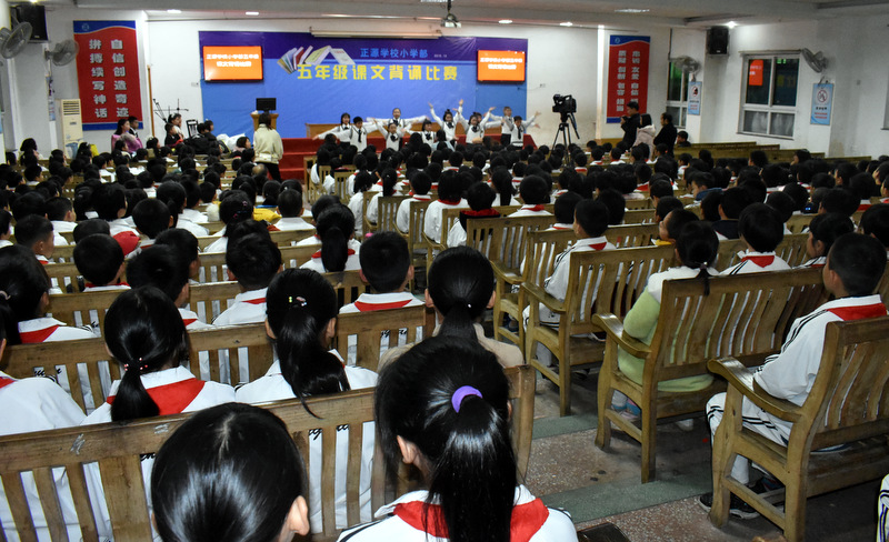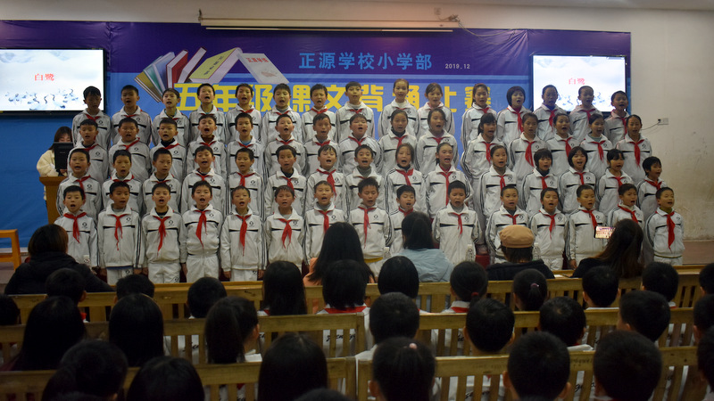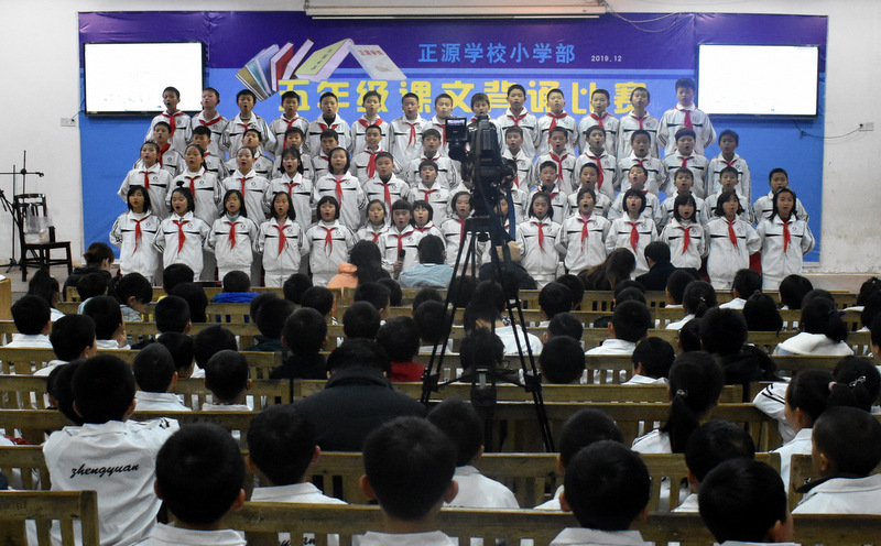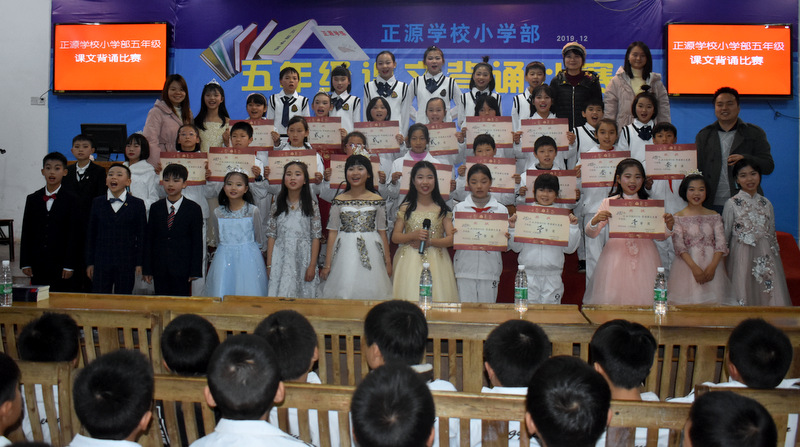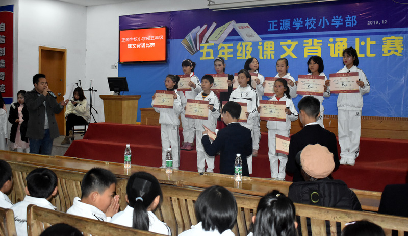 为贯彻落实新课程标准,创建良好的校园文化,营造书香满园的读书氛围,为了让孩子们爱上朗读,爱上背诵,爱上语文,感受不可抗拒的语言的魅力,12月22晚上,小学部五年级学生课文背诵比赛在学校报告厅举行。