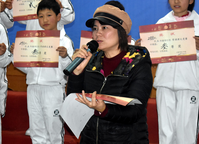赛后,年级语文备课组长吴洪敏老师作精彩总结,对孩子们的出色表现给予高度赞扬,希望孩子们畅游书海,沐浴书香,多读书,读好书!最后小学部语文教研主任贺江云和年级主任刘龙军为获奖班级颁奖。