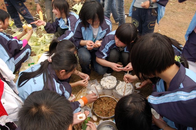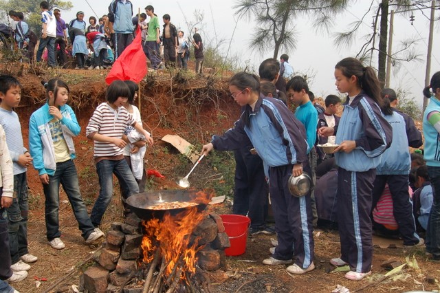带着初三同学春游那份同样的喜悦,3月17日,初一年级16个班810多名学生和30多位学校领导、老师及后勤工作人员雄赳赳气昂昂,沿着日前初三走过的路途,穿越市区走过郊区直奔鹿岐峰。在野炊中,同学们分工合作,配合默契,享受着劳动的快乐和果食,一个个神采飞扬,快乐非常。