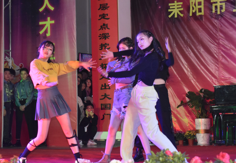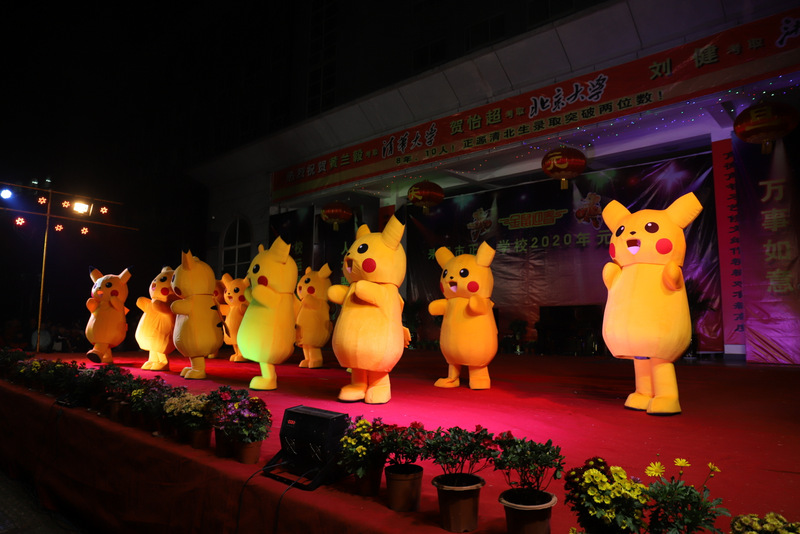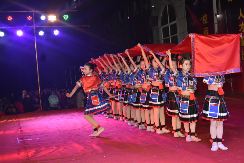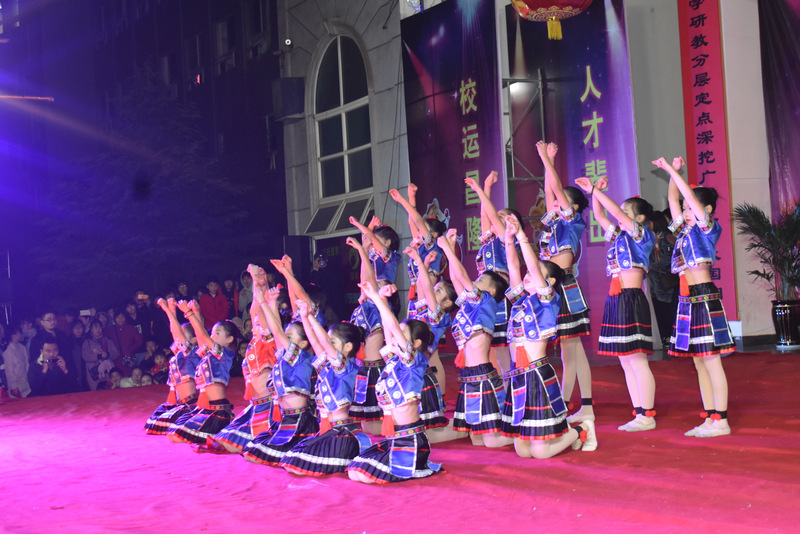 zero社团、高一年级的帅哥靓女们表演的现代街舞《让子弹飞》,活力四射,动感十足。小学部四年级的三十多名女生表演的舞蹈《瑶山彩云飞》,身着鲜艳的瑶族服装,天真烂漫。初二年级同学表演的人偶服舞蹈《皮卡丘》,十几只“皮丘卡”,矮矮胖胖圆乎乎,全身的皮毛金黄色,这么萌的精灵,跳起舞来举手投足憨态可掬。小学部五年级二十多名同学表演的《蒲公英的远行》,一身装扮惟妙惟肖,伴随着蝴蝶,追逐梦想,向蓝天飞翔。古典舞蹈《折柳》由艺术部和高二年级学生表演,十个女生长袖曼舞,婀娜妖娆;十个男生长裳折扇,舞姿翩翩。