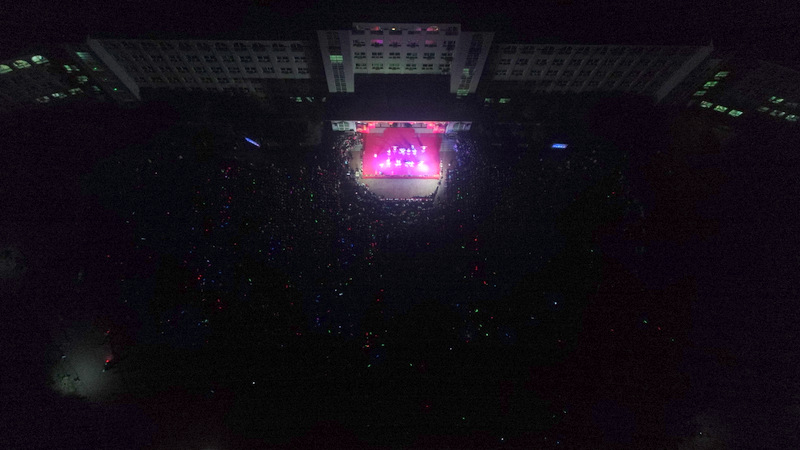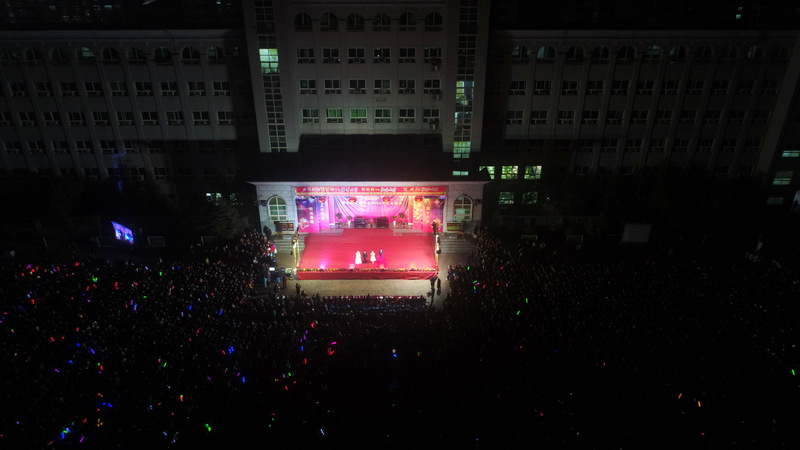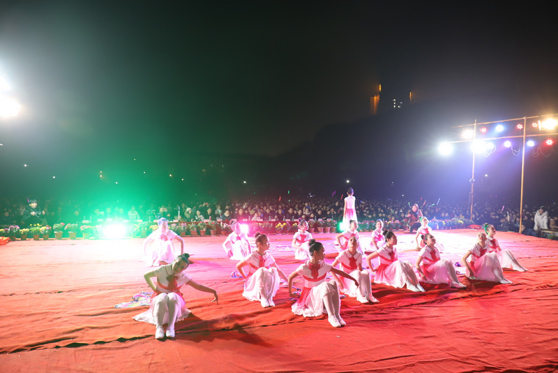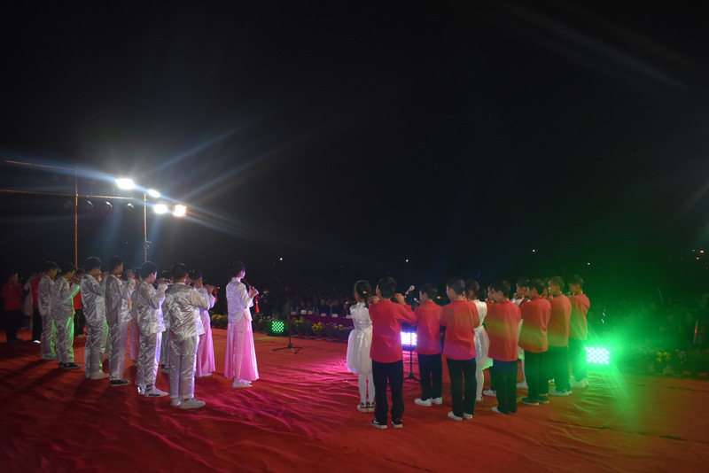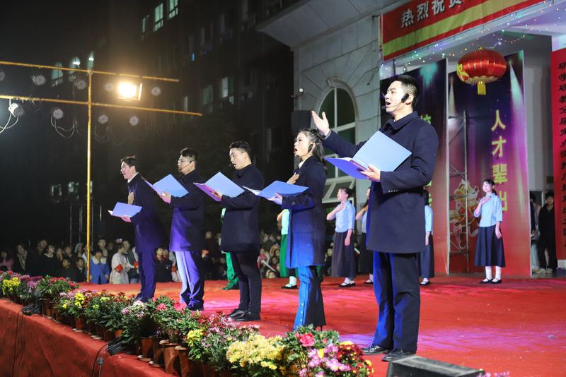 学校党支部书记毛小波、财务总监梁晓芬,以及学校其他行政领导走上舞台,与全体表演学生、指导老师一起合影,并共同高喊: