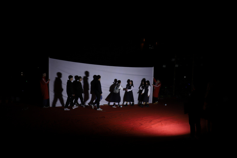 《反校园欺凌》是由高一高二年级学生陆豪等表演的影幕剧,形式独特,像演皮影戏一样,引人入胜。