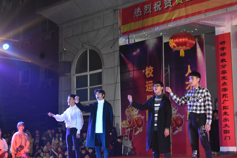 随着四个学生主持人闪亮登场与简要介绍,今年的元旦晚会,以春夏秋冬四个篇章展现在观众眼前。