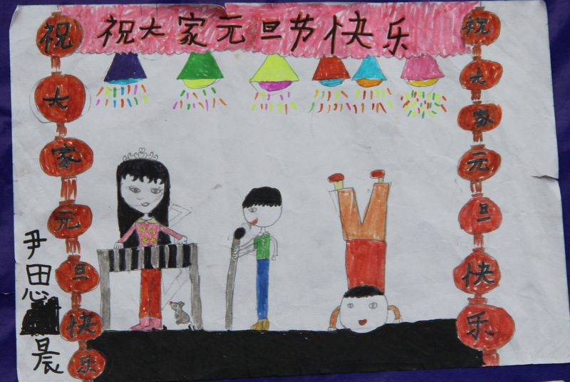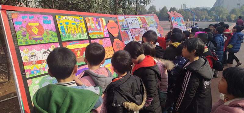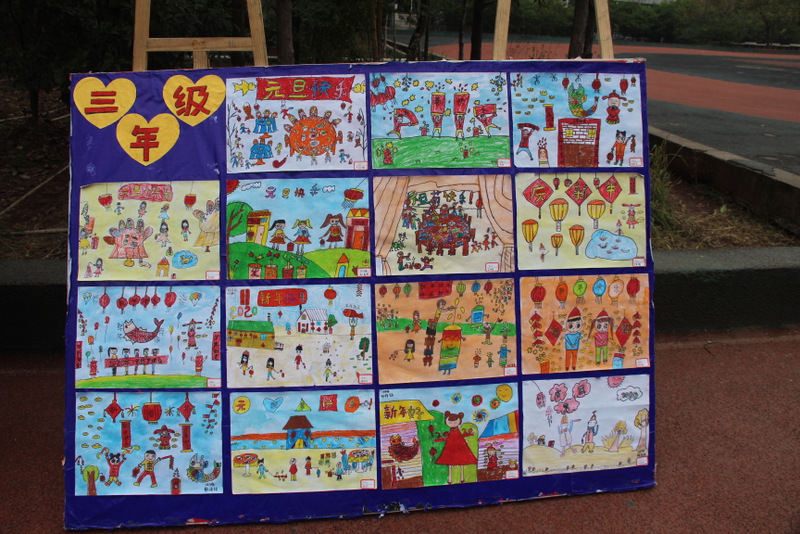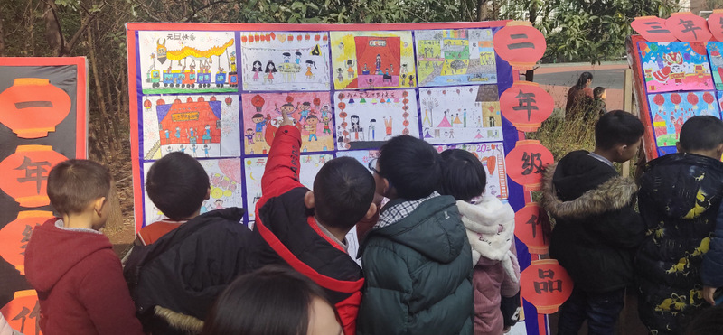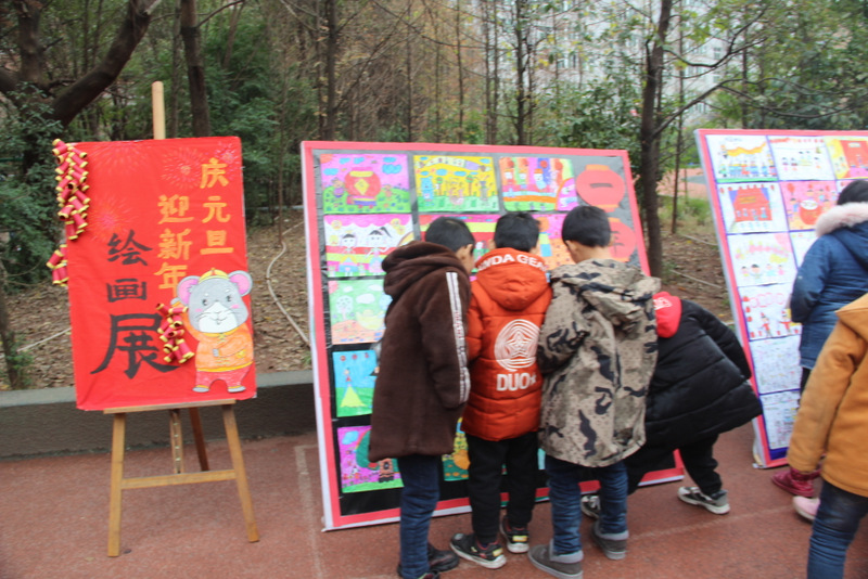 一幅幅作品色彩鲜艳,主题鲜明,充满童趣,他们以自己对元旦特有的解释描绘热闹的新年,吸引广大师生驻足观看,使大家在欣赏中得到启示,在愉悦中得到教育。丰富了学生的校园生活,成为“庆元旦,迎新年”活动中一份别致的文化盛宴,为新年的到来献上一份浓浓的文化厚礼。