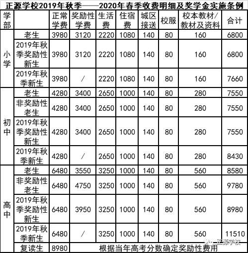 那么,退还生活费和住宿费有明晰的标准么?有,这就是我们历年的《正源学校收费明细和奖学金实施条例》,大家可以在正源学校网站和公众号上查阅,本文附上2018—2019年度收费明细。