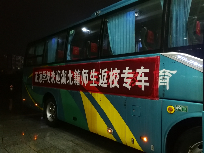 4月2日,随着挂有专门宣传标语的衡阳市政府、耒阳市政府接返组专车从湖北顺利返回本地,正源学校潜江籍的18位老师及家属安然返回学校,结束了这个长达近三个月的特别寒假。