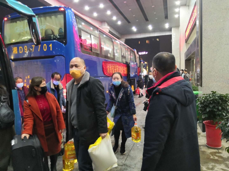 上午十一点,接返组专车从荆州抵达潜江,接到潜江籍老师及家属后随即开始返程。下午五点左右到达衡阳市南华医院,全体人员接受医学检测。一两个小时后,结果出来,全部为阴性,便改乘耒阳市政府的接返专车返回耒阳。
