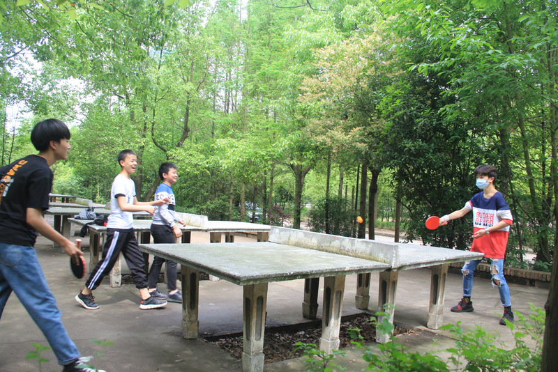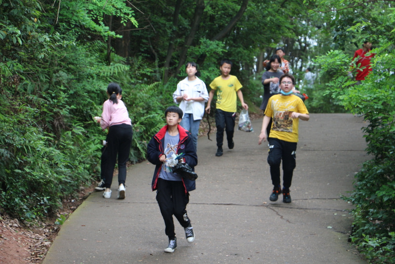 初夏的阳光,不急不躁;初夏的微风,恰到好处。正是校园放松追逐的最佳时刻。瞧,C414的同学正在广场进行环山竞赛之前的热身训练:男生俯卧撑,女生平板支撑。也许是因为疫情期间封闭太久,长时间缺乏体育训练,3分钟的筋骨活动之后,部分同学已是气喘吁吁。但当环山竞跑的哨子吹响时,立马又个个精神焕发,如脱缰的马儿飞奔起来。紧接着,C394、C397、C398、C403、C404、C407、C408、 C417、 C423、 C426、 C431的同学们也迫不及待地投入到校园天然氧吧之中。东山慢跑,西山追逐,到达山顶之后高声呐喊,释放心中梦想;有的班级在广场席地而坐,侃侃而谈,各种Pose绽放青春活力。C407班的同学则在广场一侧进行跳绳比赛,孩子们在单跳,双跳,接力跳的绳索中穿行,犹如鱼儿在水中欢快畅游。