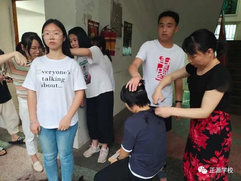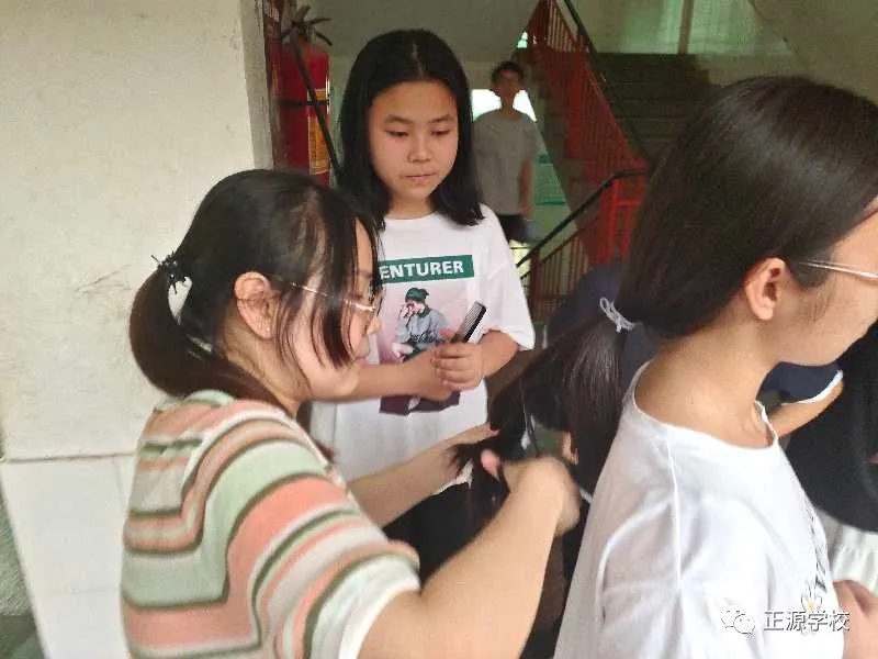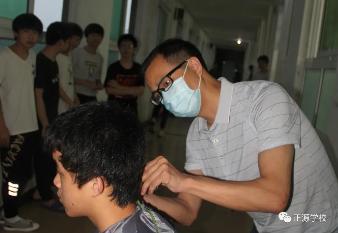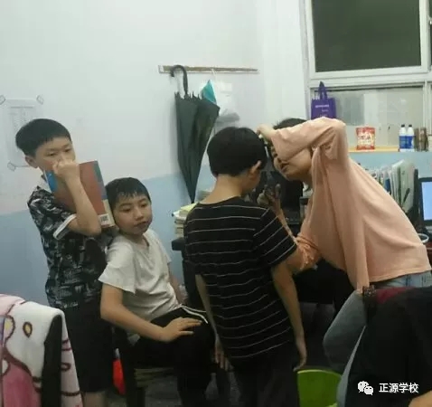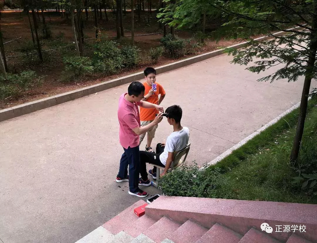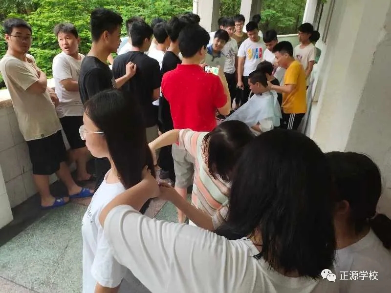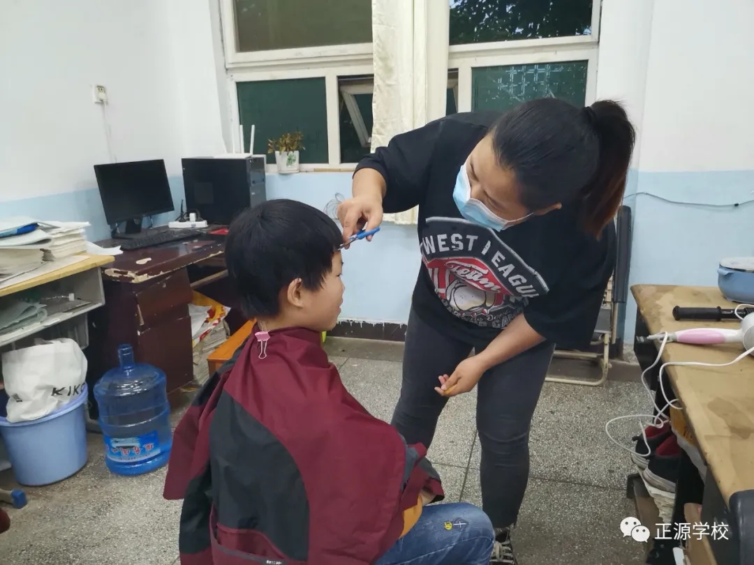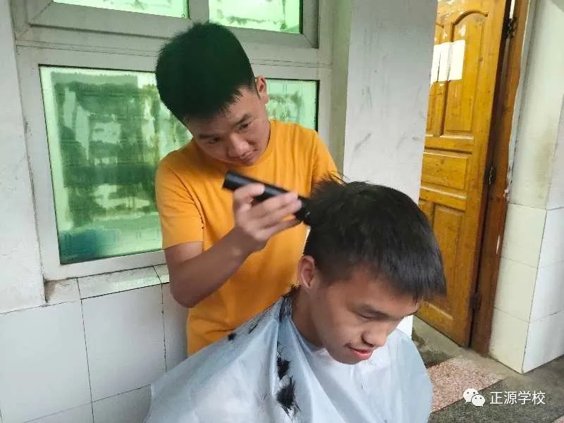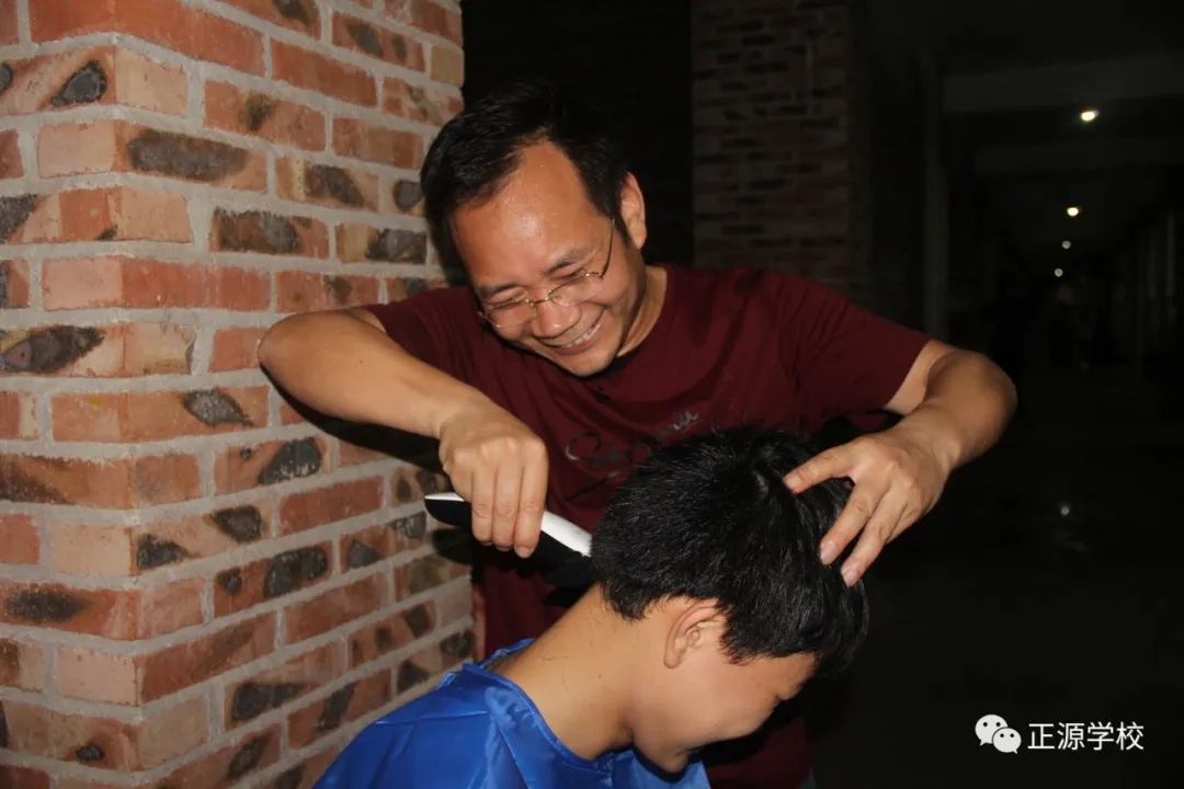 在正源校园里,这样的“便民服务站”多处可见,有年级把理发的场所设在老师办公室,同学需要理发,利用课余或者自习时间,走进办公室就可以解决。有年级把理发场所设立走廊上、教室门口等,理发师有学生也有老师,怎么方便怎么剪,没有限制,没有要求。罗校长在学校管理群里指示,为解决学生理发的问题,准备请一个理发师在学校授艺,购买来理发工具,给同学们学艺。现学校已向人社局申请美发师来校传授技艺。