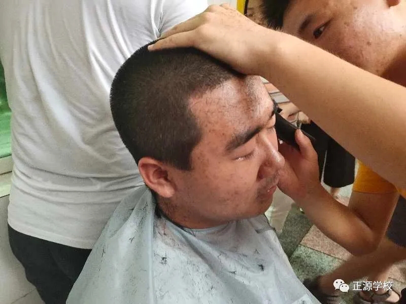 准高一年级罗鹏老师为学生理发
