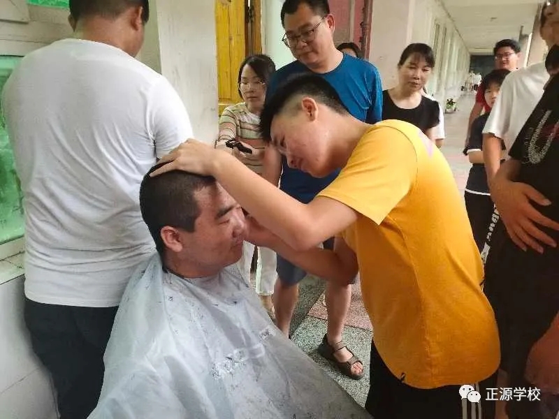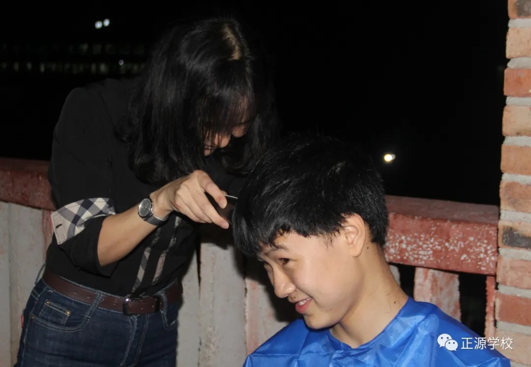 高一年级彭阳老师为学生义务理发