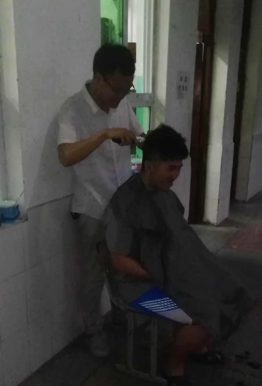 初三年级李录顺老师为学生义务理发