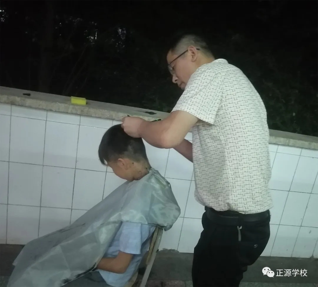 初一年级主任倪南辉老师亲自上阵给学生理发