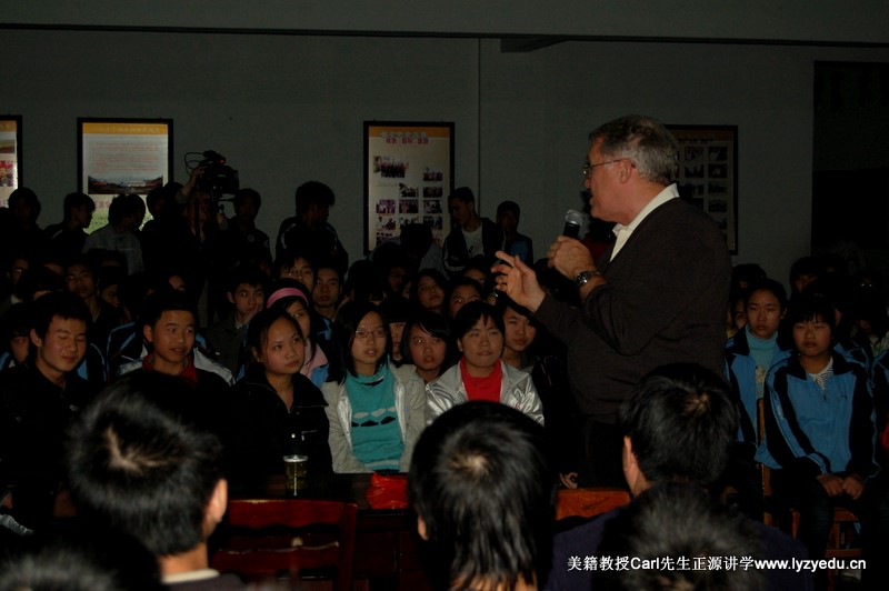 2009年4月6-7日,美籍教授Carl先生应邀来我校进行讲学和交流活动。在校期间,Carl先生为高一年级全体学生作了英语演讲,并与学生们进行了广泛交流。