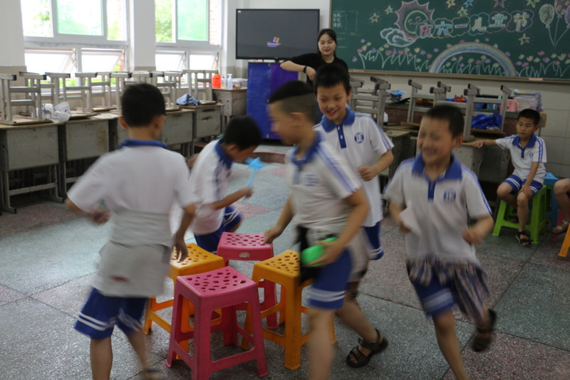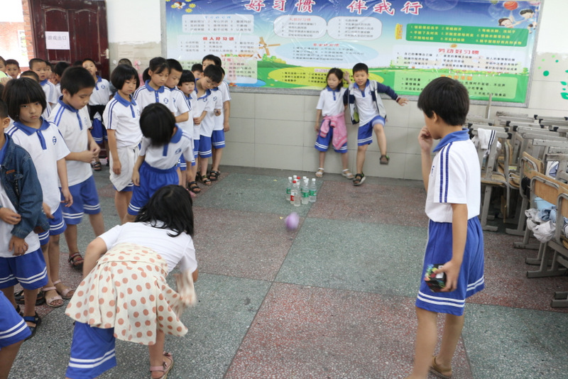 清早六点多,同学们还在食堂早餐,就都在你一言我一语地议论今天的活动了,早餐还没用尽,就迫不及待地丢下碗筷,冲出食堂大门,奔向教室。此时的教室早已经是灯火通明,张灯结彩,一片忙碌。天公也特别作美,虽已到夏天,然凉风习习,调皮的太阳悄悄地躲在了云彩后面,似乎在和孩子们捉迷藏。我想,太阳大概是知道我们可爱的孩子们要玩游戏,不想他们热得出汗吧!