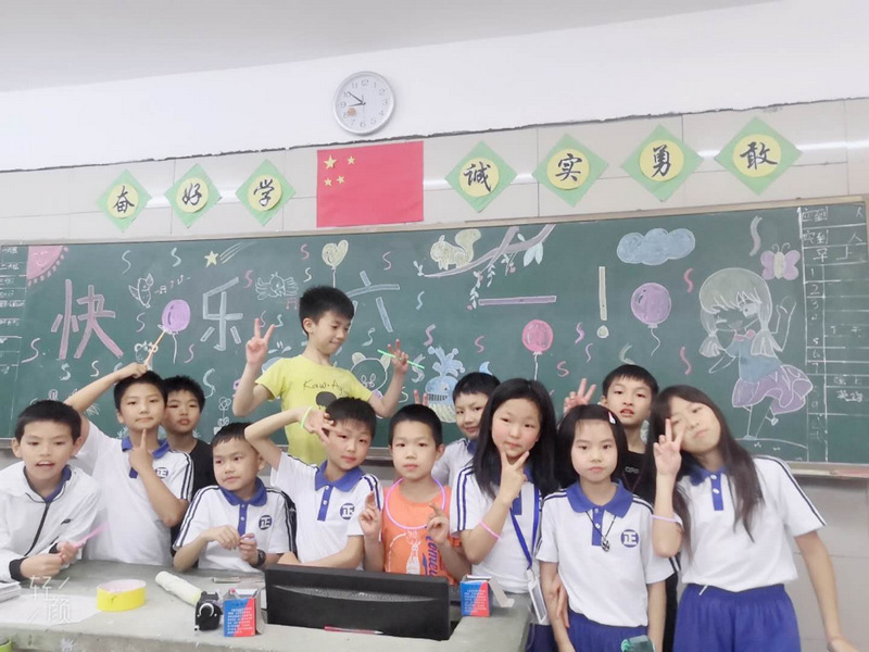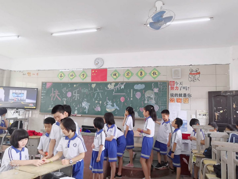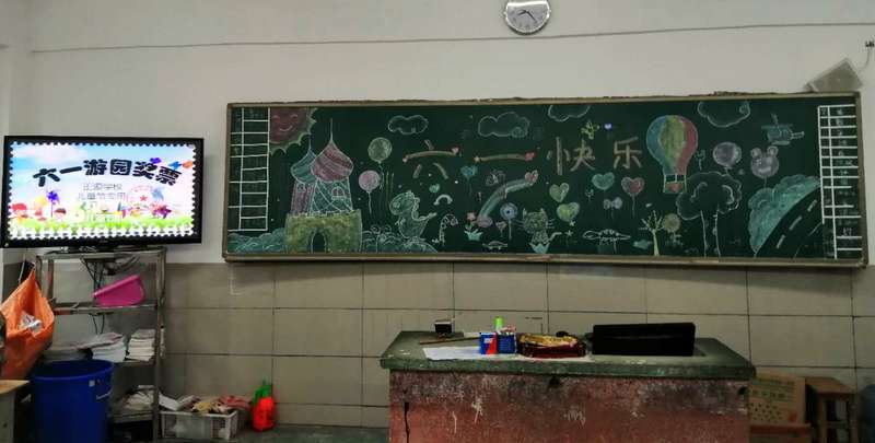 活动前,年级主任阳明权根据本年级学生的年龄特点,设计了不同的游戏活动,并制定了周密的活动方案。孩子们提前把各班级教室布置了一番,黑板上孩子们用丰富的想象力,大胆的色彩描绘出一幅幅可爱绚丽的画面,写上了“六一快乐”等大字,墙壁上,玻璃上都贴上了手工剪纸,教室里挂满了彩球。教室门前色彩艳丽、形象生动的宣传海报,吸引了许多同学驻足观看。