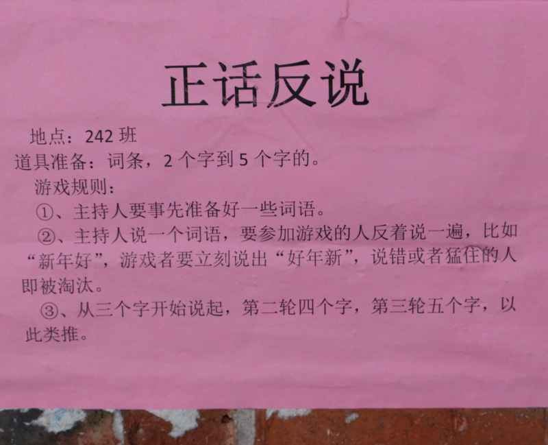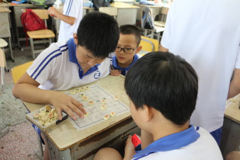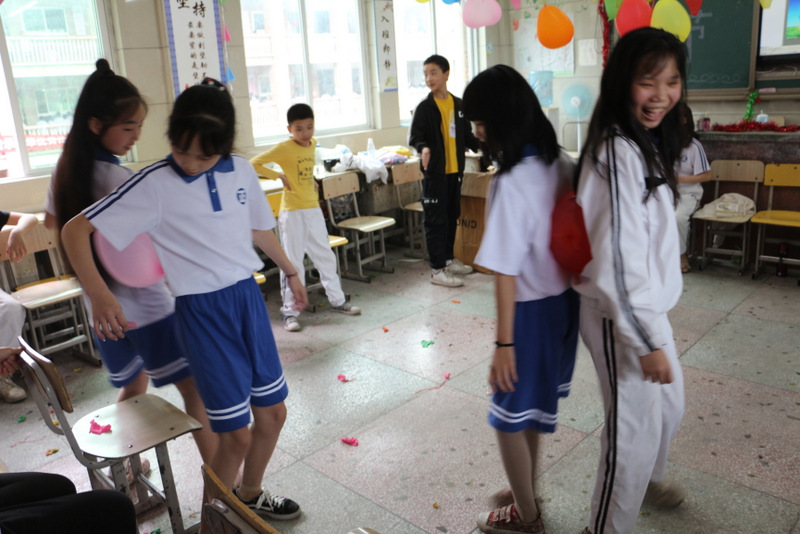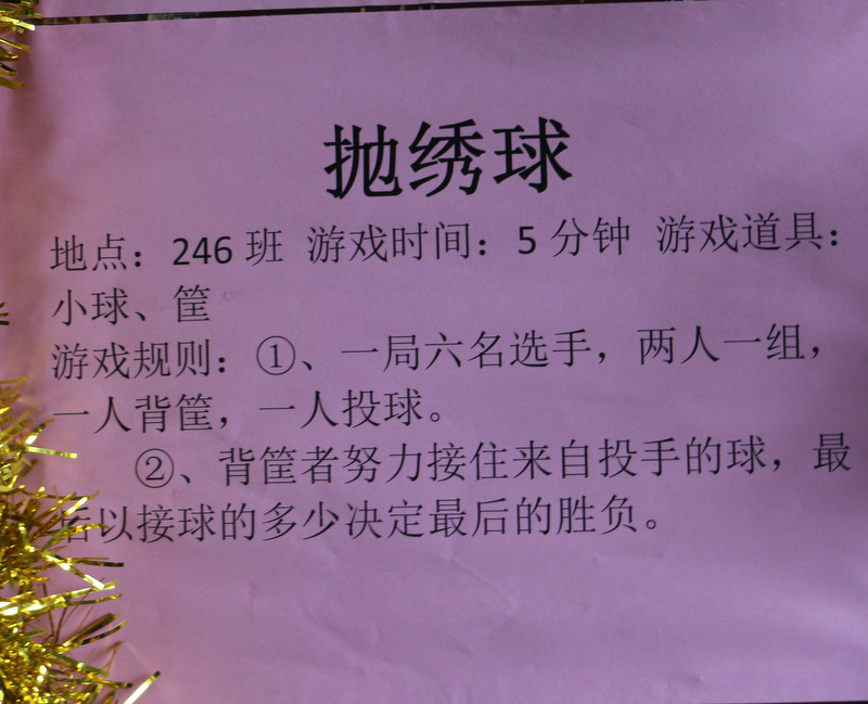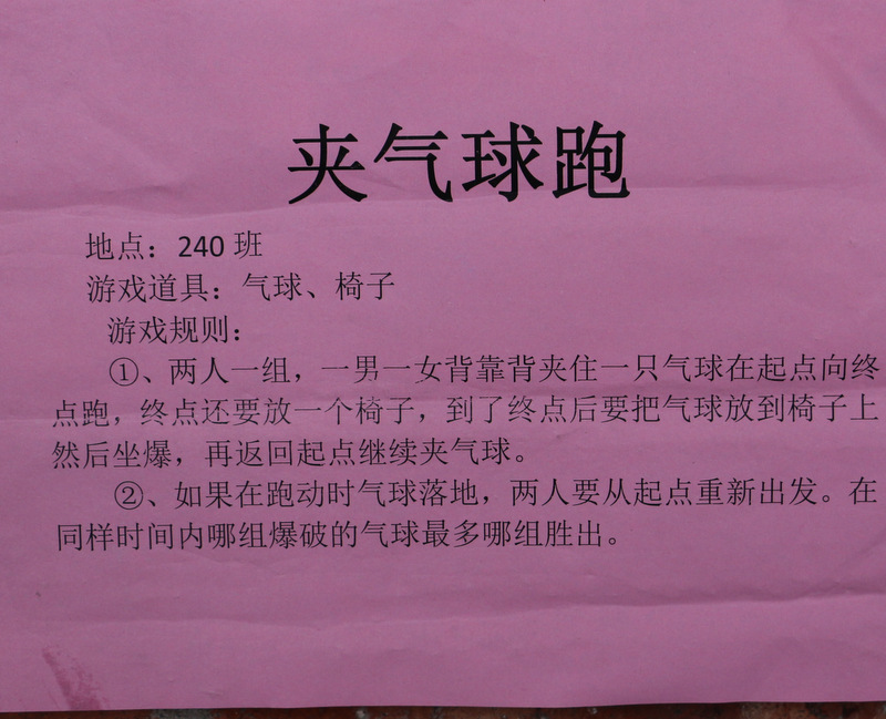 节目表演完之后,就是孩子们最期待的游戏环节,不但可以玩有趣的游戏,还可以凭兑奖票去兑换儿童节的礼物。兴奋的孩子们来到活动场地展开了一项项有趣的游戏,如双龙戏珠接力赛、你比我猜、转呼啦圈、夹气球跑、正话反说、反常态、抛绣球等等。最受大家欢迎的要数转呼啦圈和夹气球跑这两个游戏。转呼啦圈需要5人一组,手拉手站成一排,在其中一人手臂上套上一个呼啦圈。比赛开始时,各小组同时运动,在不许用手的情况下,把呼啦圈穿过每个人的身体,最后传一圈,最先完成的一组胜出。孩子们5人组队,各出奇招,呼啦圈在身姿灵活的孩子们中间跳跃着,翻滚着。参与的孩子们齐心协力,默契十足,力求夺冠;围观的孩子们热情高涨,激动万分,欢呼声、喝彩声响彻屋顶,校园变成一片欢乐的海洋。