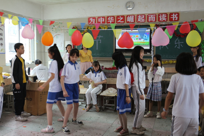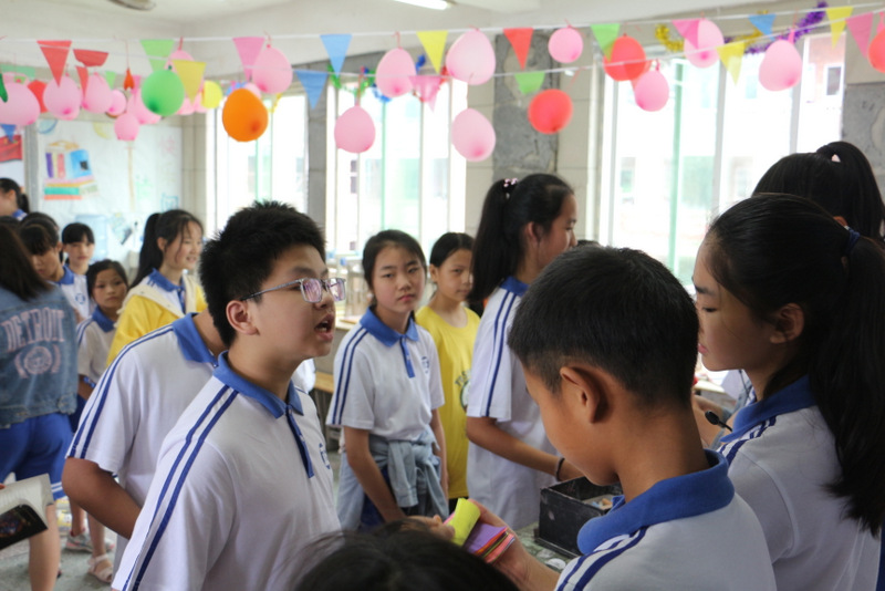 提前一天,孩子们就各司其职的忙开了,把教室布置的热闹喜庆,充满节日气氛。教室里挂满五颜六色的气球,彩旗飘扬在教室的上空;心灵手巧的孩子折了千纸鹤做成门帘,剪了漂亮的窗花贴在玻璃上。