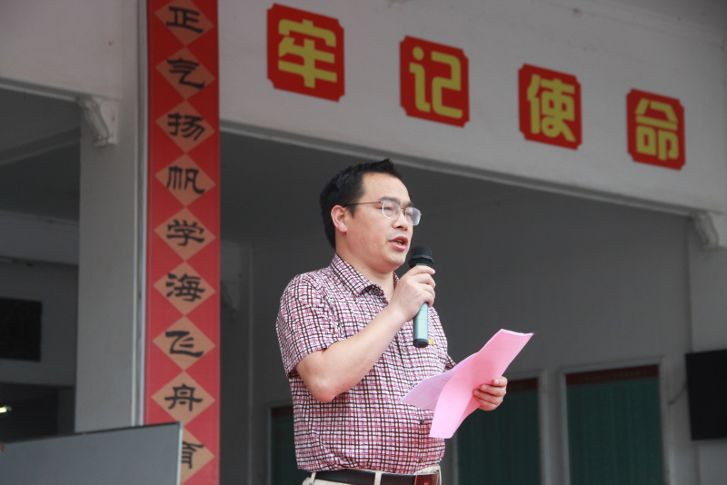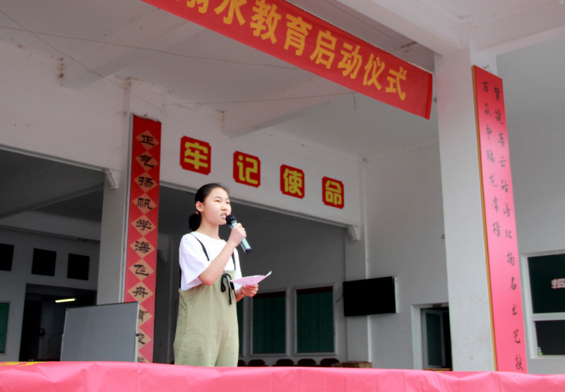 初中部全体学生整齐划一,列队参加仪式。活动开始,党支部书记毛小波发表讲话,毛书记先以数据说话,向参加活动的同学们公布了每年溺水学生人数,随后阐述了学生溺水原因及溺水后自救办法,讲话的最后,毛书记着重强调了防溺水六条规定。