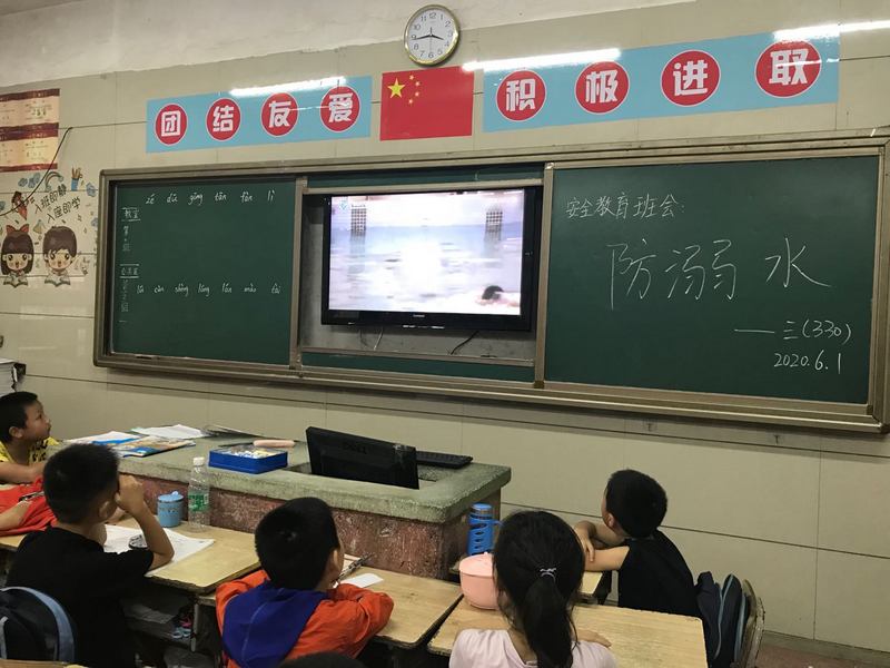 当天下午班会课上,全校各年级组织班级召开防溺水主题班会,观看防溺水教育视频,多方位解读防溺水知识。