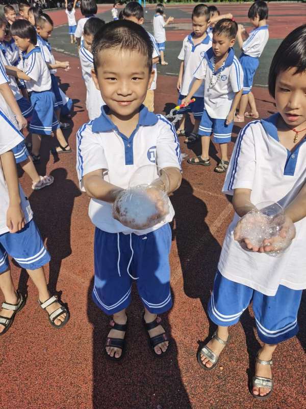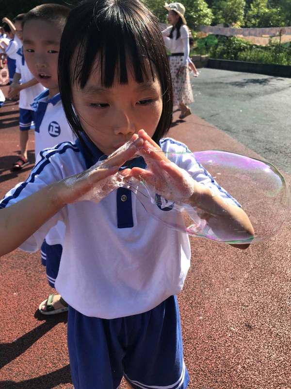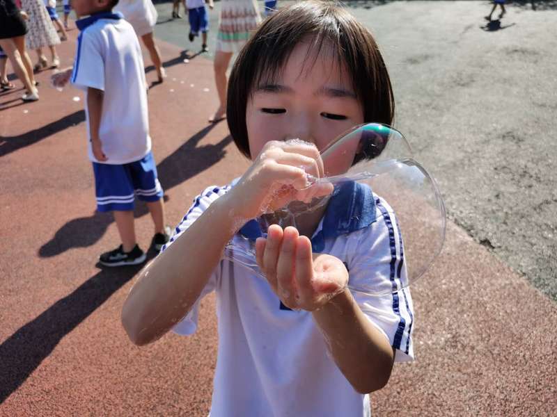 “哇,好美的泡泡!” “哇,你看泡泡上天啦!”“……”此次玩泡泡活动,在同学们的欢呼与赞叹声中,拉开了帷幕。