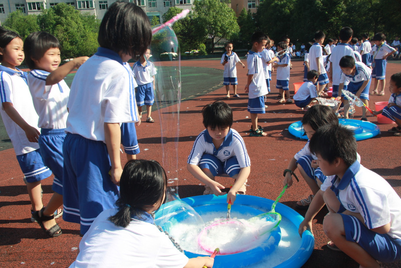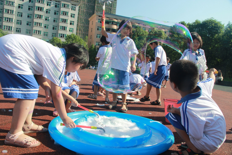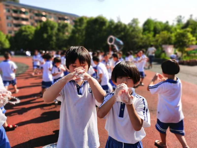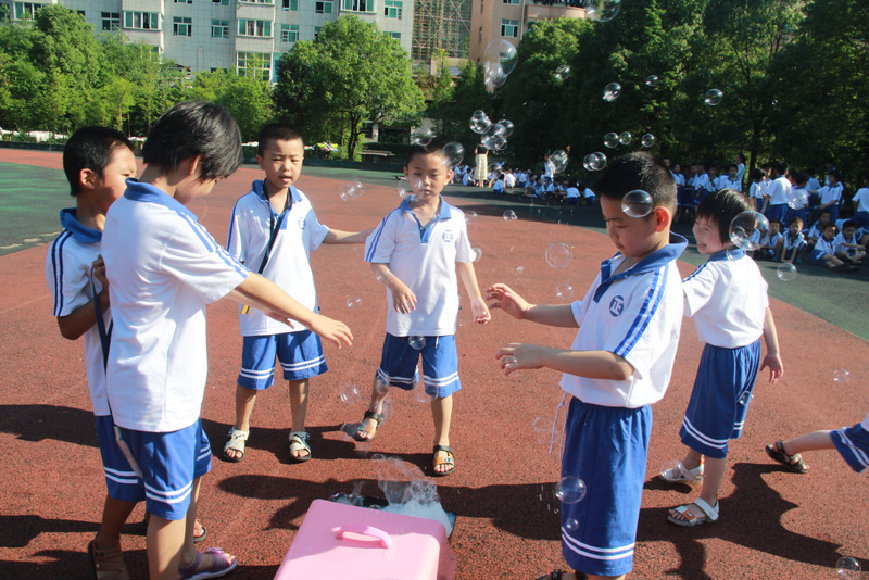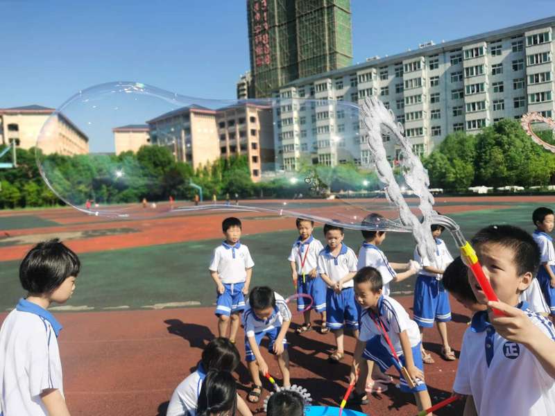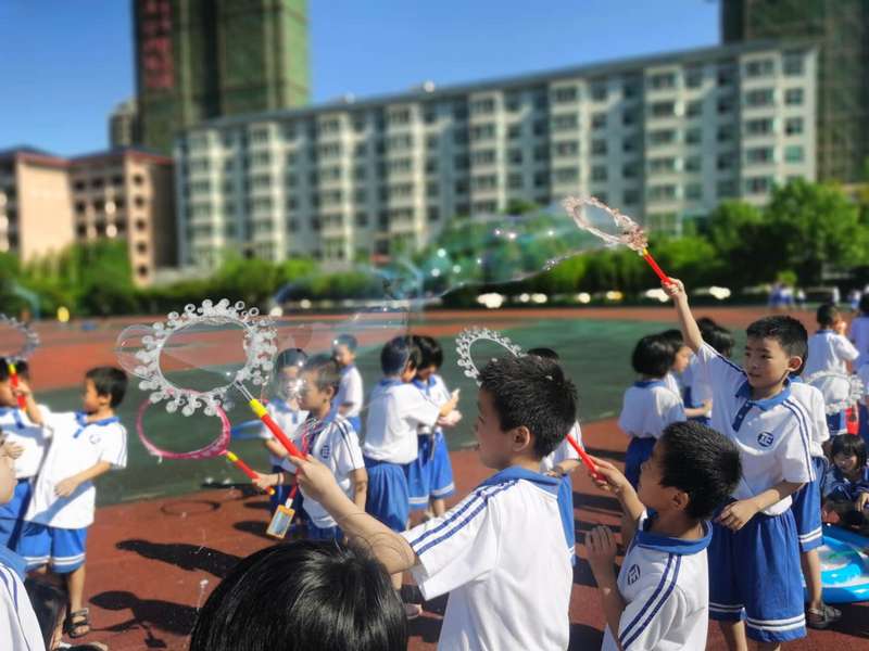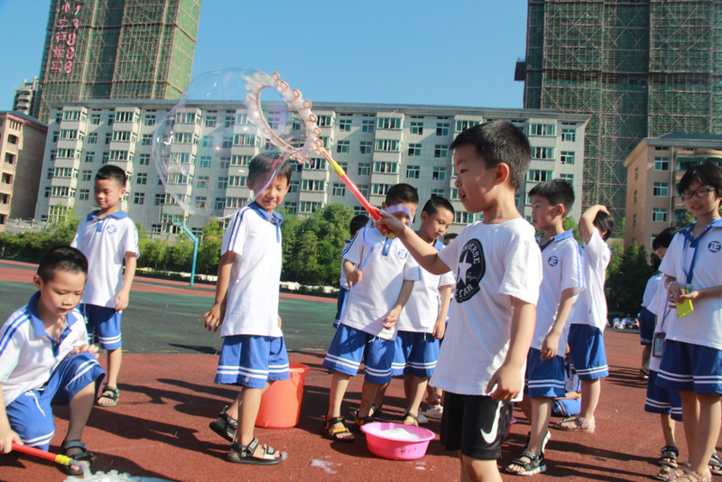 灿烂的阳光,甜美的笑容,给校园增添了无限生机。飘飞的泡泡给我们以遐想。6月12日,小学部一年级全体学生,在运动场举行了玩泡泡户外活动。