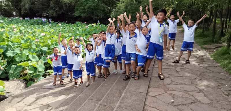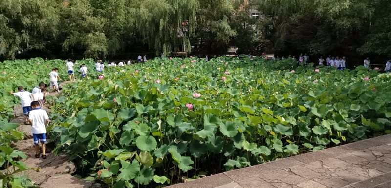 荷花池边,杨柳轻垂,人来人往,倒影婆娑。兴奋的同学们在仔细地欣赏着碧绿的荷叶和鲜艳的荷花,不知是不是被孩子们激情似火的情绪感染了,那一朵朵荷花感觉开得格外的娇艳,有的同学们还做起了小诗人,不自觉的开始朗诵起了“接天莲叶无穷碧,映日荷花别样红。”我们的班主任老师眼疾手快,立马掏出手机,记录下了这充满诗情画意的情景。同学们看到老师拍照,一个个笑得更欢了,有关荷花的诗歌也背的更起劲了,此情此景怎能错过,老师们不停地按动快门,只听得“咔…咔…咔”的快门声此起彼伏,一张张灿烂的笑脸,一个个充满童趣的pose,一幅幅师生同乐的感人画面,瞬间都被永远地定格在照片中,成为孩子们童年的美好回忆,也成为活生生的正源历史!
