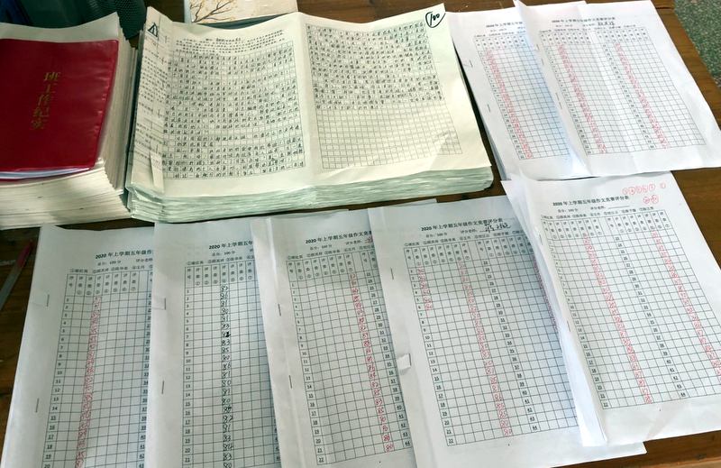6月14日经过五年级语文组老师的初步筛选,选出了115篇作文进入决赛。6月15日,五年级语文组老师集体批阅决赛作文。经过长达三个小时的艰难抉择,一篇篇文章终化为一个个分数停歇在评分栏里。