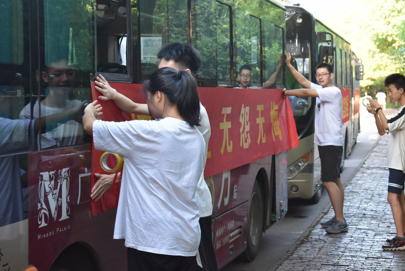 与此同时,高二清北班的学弟学妹们已开始为送考车贴上横幅,“寒窗苦读成旧梦,独占鳌头谱新篇”,“今朝皆为芬芳桃李,明朝定成祖国栋梁”……一条条横幅饱含全校师生的殷切祝福,寄托了社会各方的美好期望。