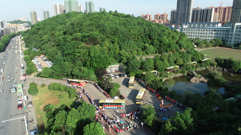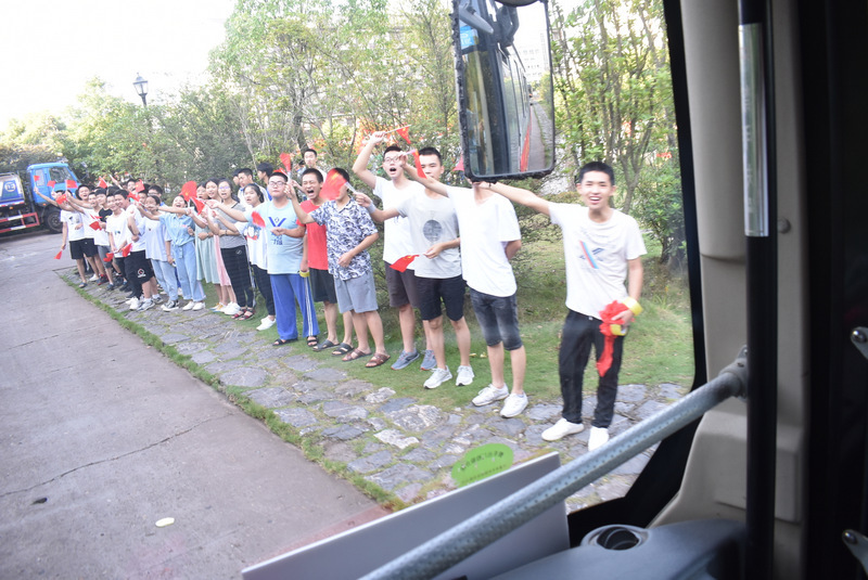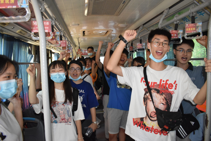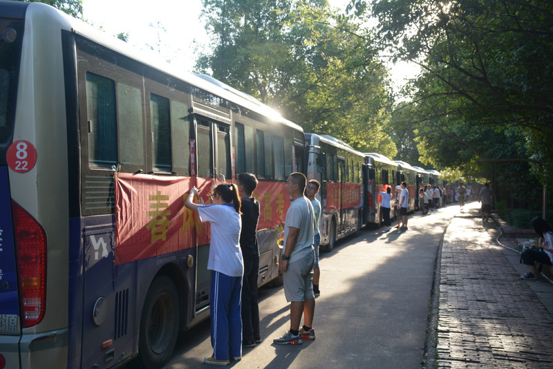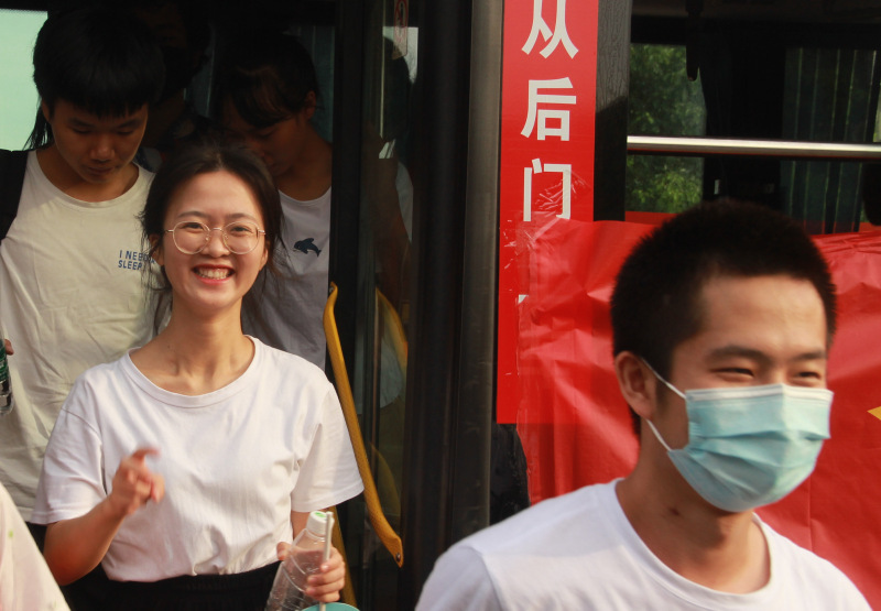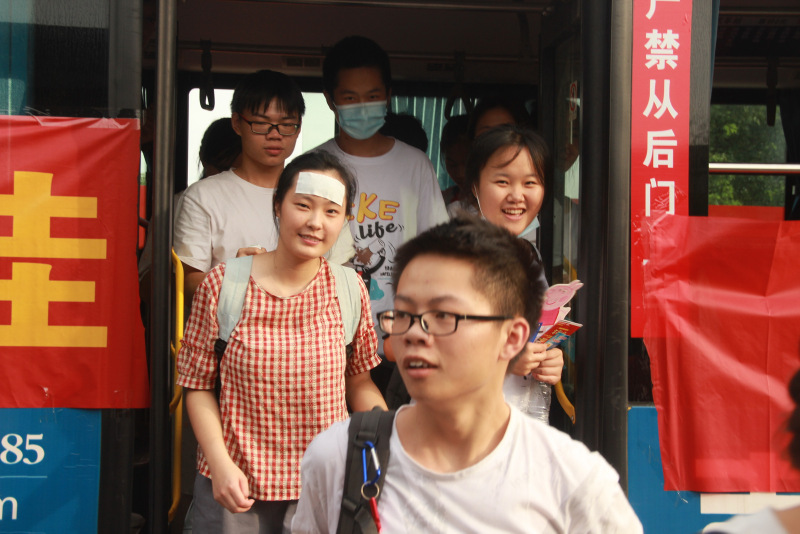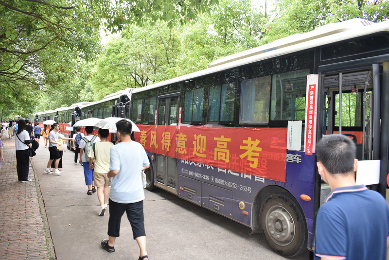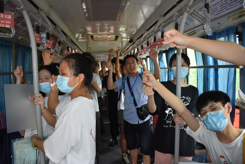 7:10,在雄壮的励志歌曲中,考生们登上送考车,从容不迫,信心满满。